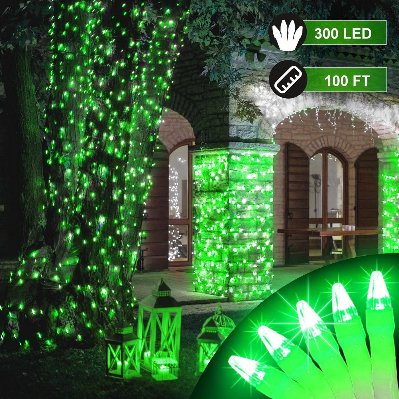 ?? Length: 100FT with 300 bright LED lights, perfect for large spaces.