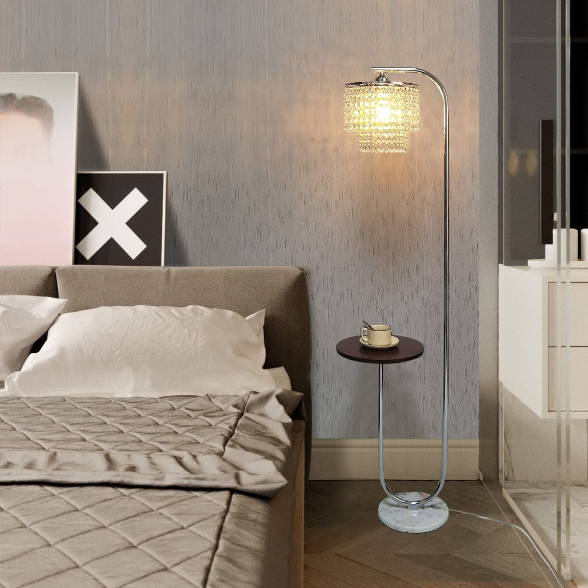 Hsyile Arc Crystal Floor Lamp For Living Room - Marble Base Modern Tall Stand Up Light With Table,Contemporary Over The Couch Ch