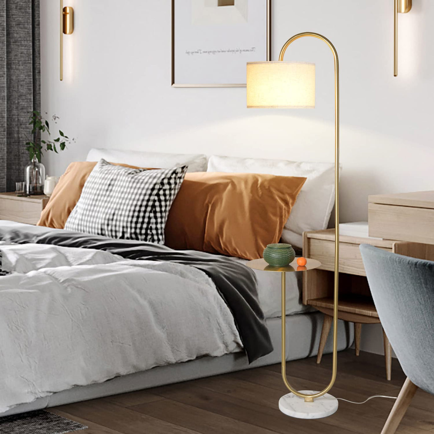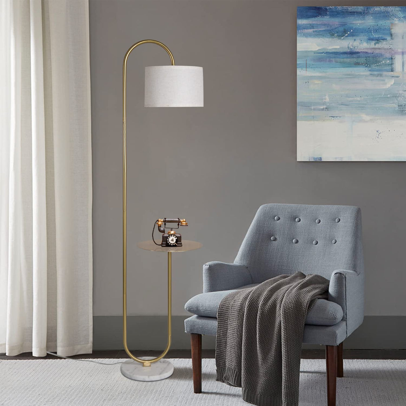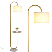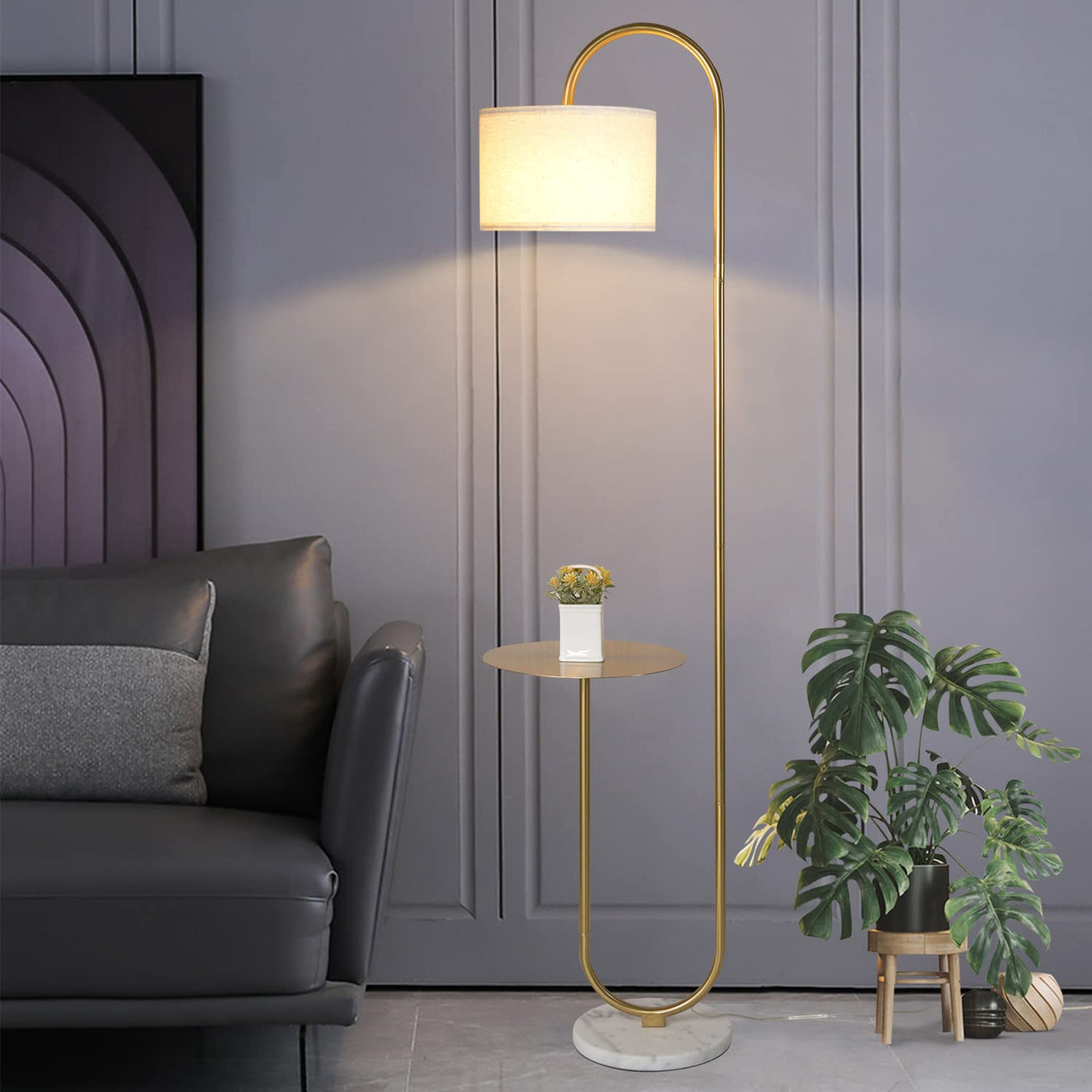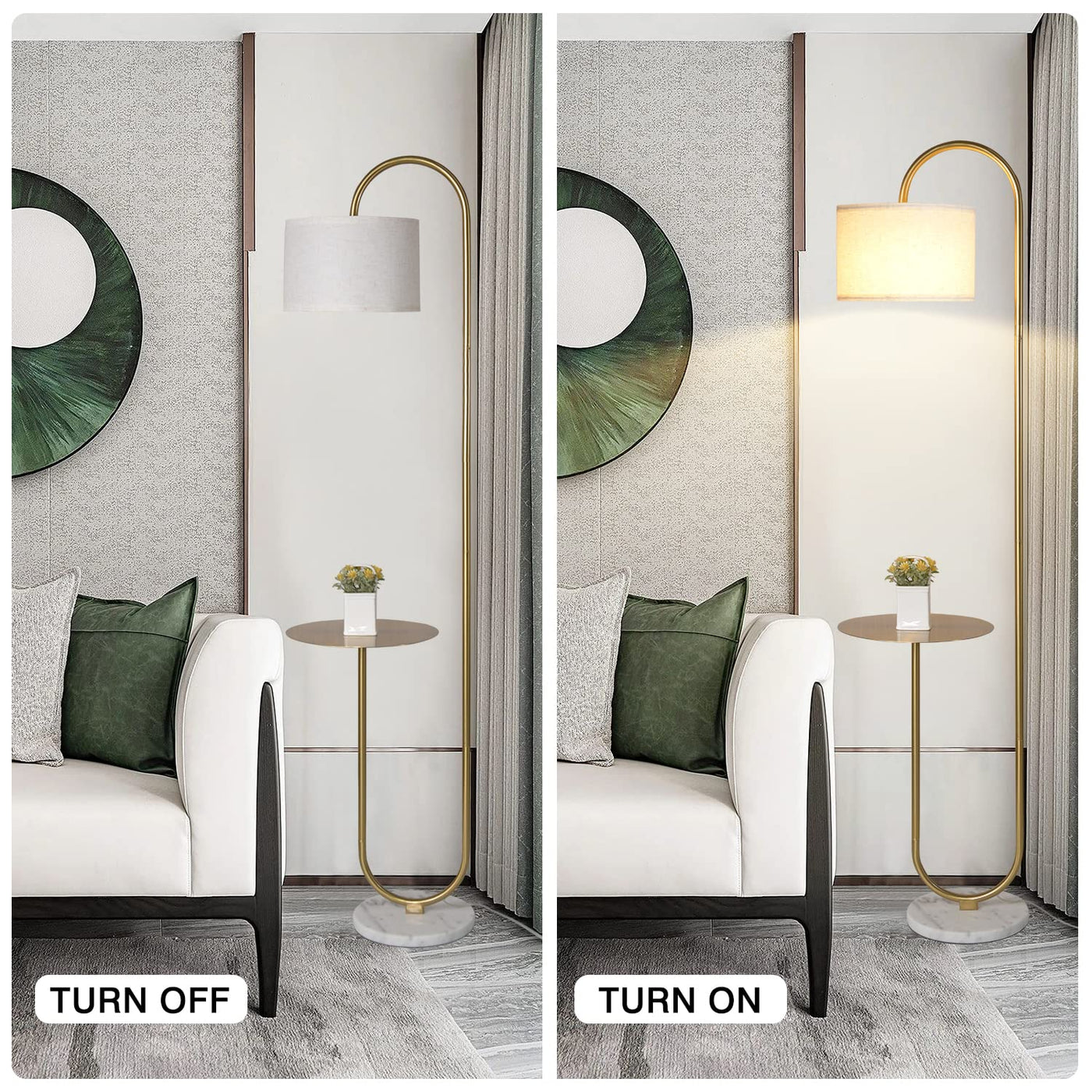 Hsyile Ku300271 Arc Floor Lamp With Hanging Drum Shade For Living Room-Marble Base Modern Tall Stand Up Light With Table, Contem