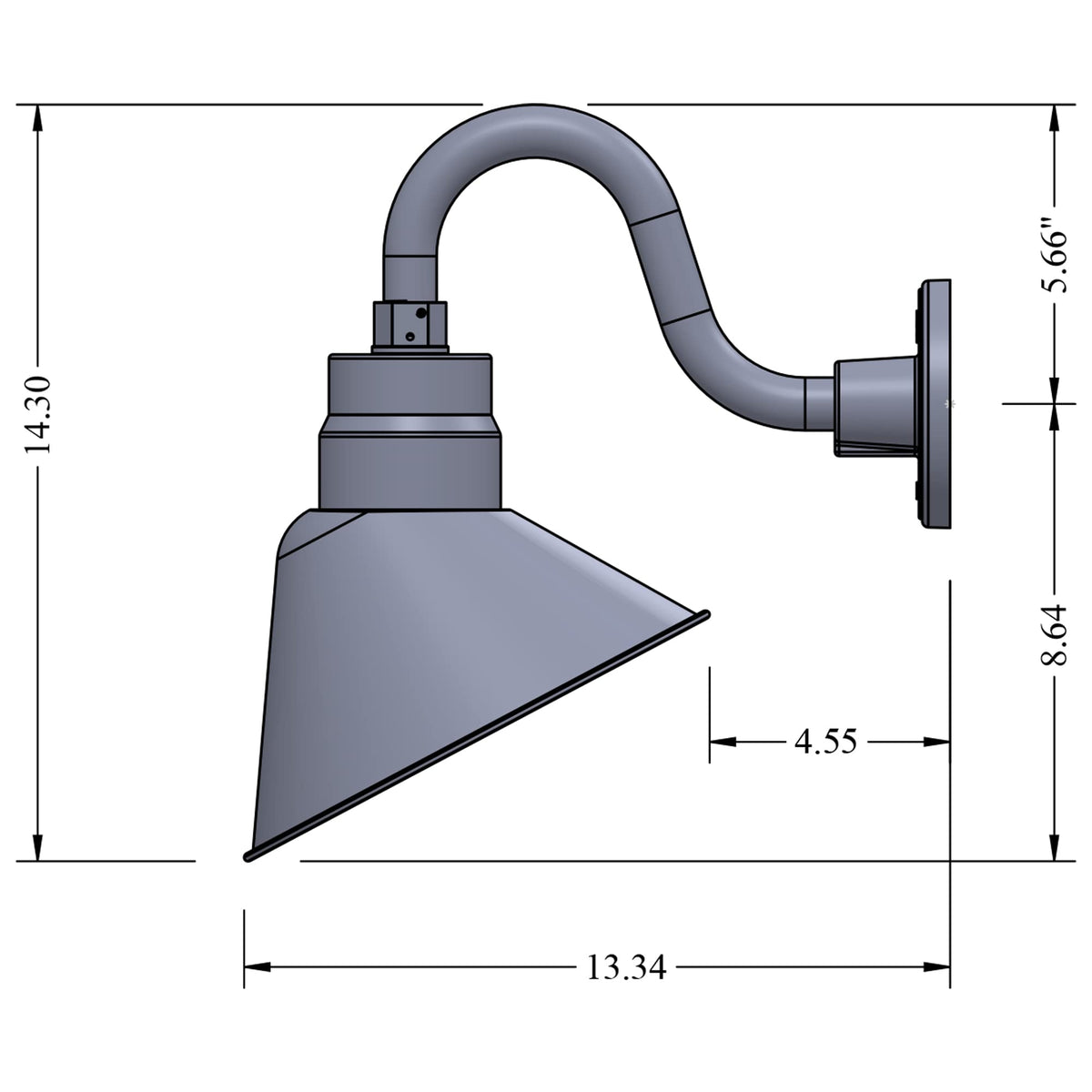 Classic Gooseneck Design: Featuring a 10-inch diameter shade and a 10-inch long gooseneck arm, it extends a total of 13.34 inches from the mounting plate, providing optimal light direction.