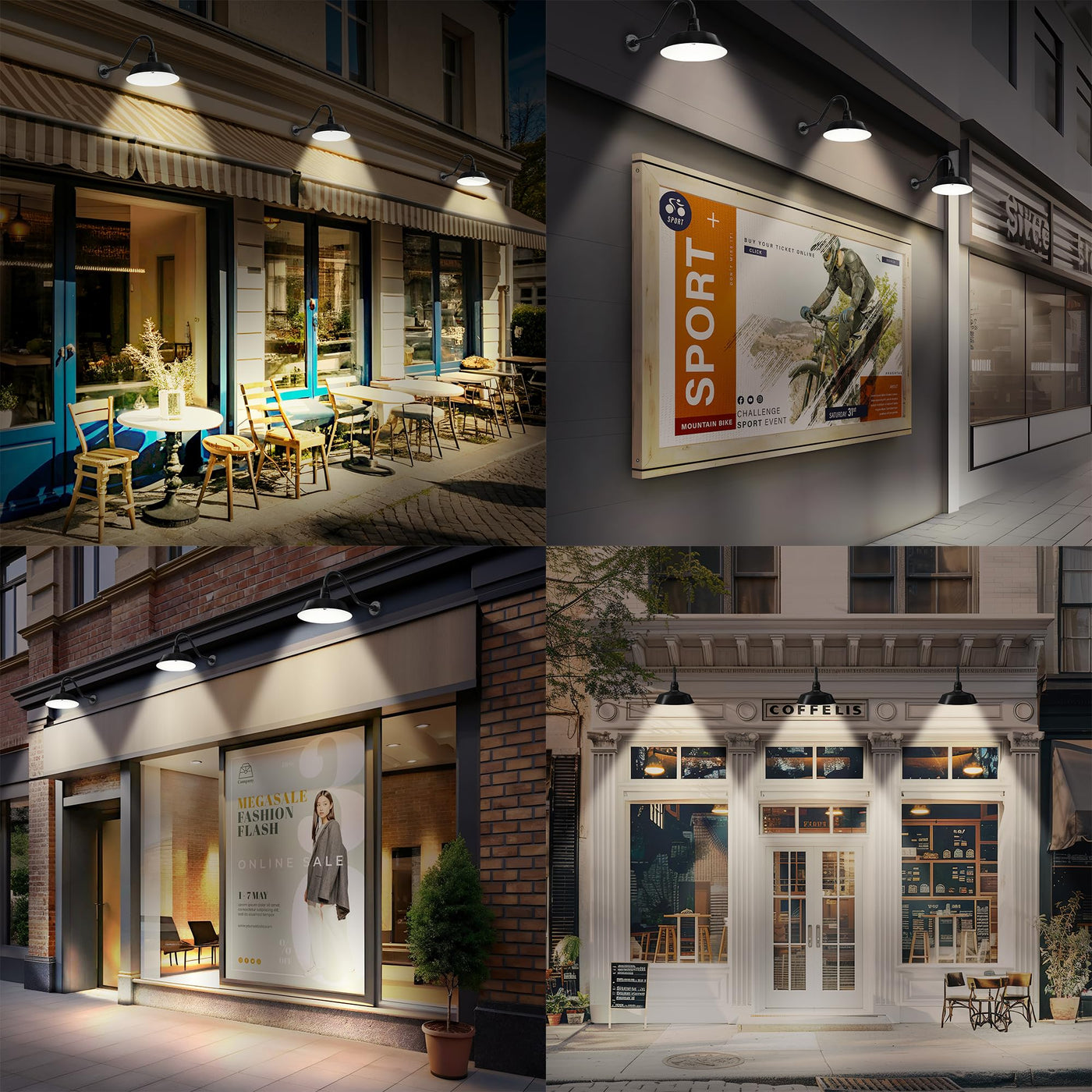 Q: What are some common applications for the Gooseneck RLM light fixture?A: Common applications include outdoor sign lighting, storefronts, restaurants, wall lighting, and barn lighting, among others.
