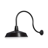 The Sleek 17in. Satin Black Warehouse Shade, also known as the Gooseneck Barn Light, combines vintage charm with modern functionality, making it a perfect addition to any outdoor or indoor space. This elegant lighting solution features a durable design and versatile applications, ensuring it meets both aesthetic and practical needs.