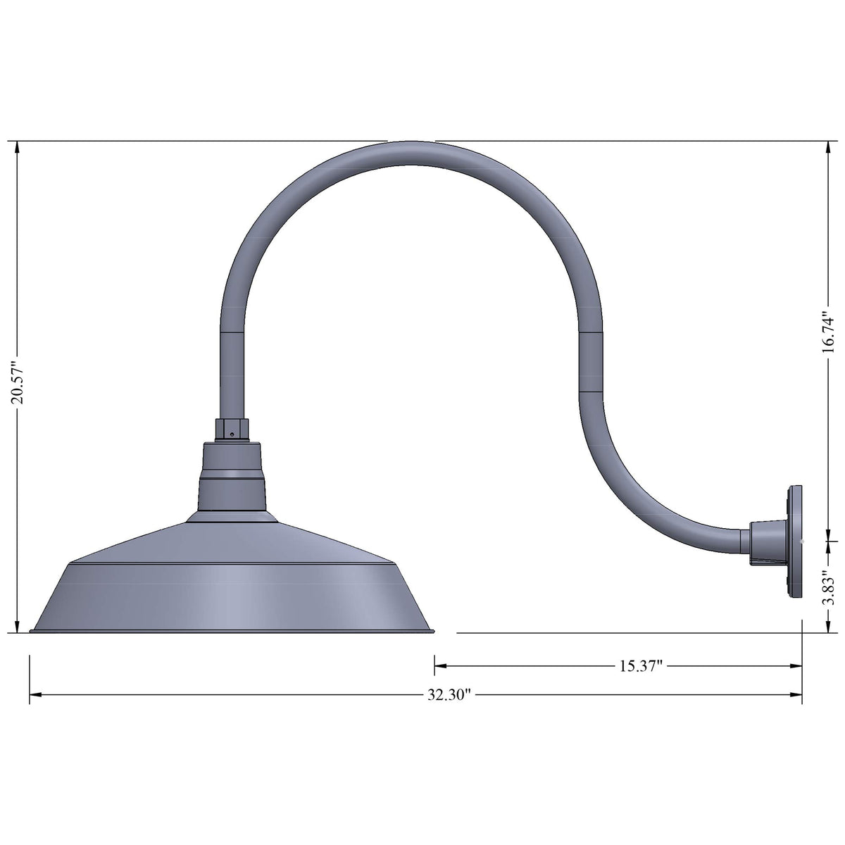 Vintage Gooseneck RLM Design: The 17-inch diameter shade paired with a 24-inch long gooseneck arm extends a total of 32.30 inches from the mounting plate, providing an eye-catching focal point.