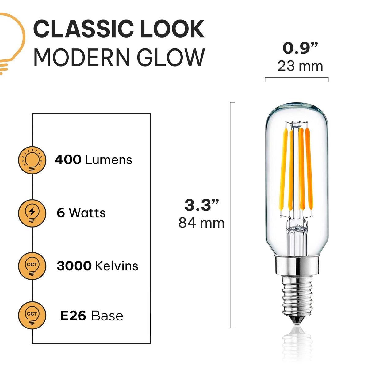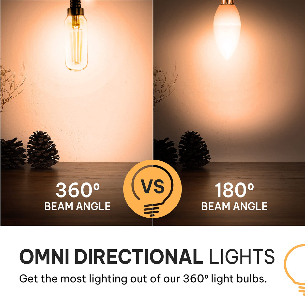 Hudson Bulb Co. 4W Led Candelabra Bulbs - 3000K Dimmable T6/U, 6 Pack, E12 Small Base, Warm White, Ul Listed