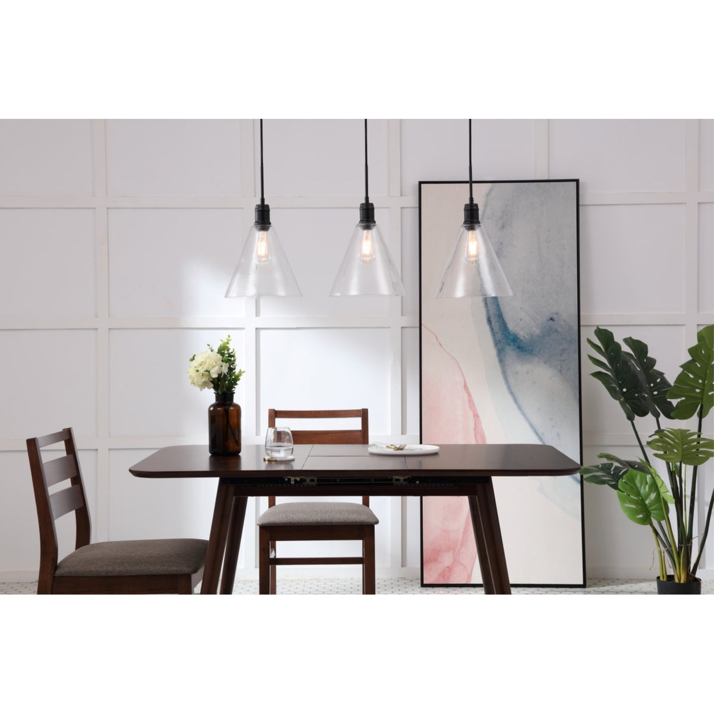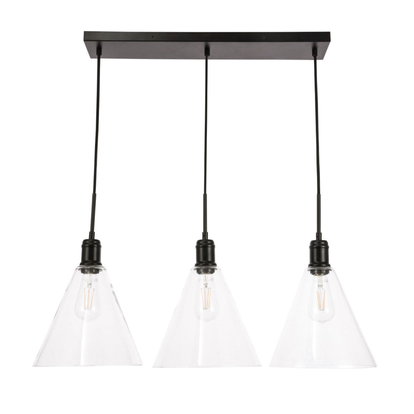 The Hugh Collection of hanging pendant lamps offer clean lines with its three round clear glass shades. Its size makes it the perfect fixture to illuminate small spaces, such as apartments in the city, but it is also bright enough to illuminate any larger spaces as well. Don't be limited to one place because this fixture is versatile with any design and location. Its light and welcoming brightness will surely brighten your day-today life. Enjoy modern day life with this contemporary style (light bulbs not included).Proposition 65 WARNING: This product can expose you chemicals including lead and lead compounds, which are known to the State of California to cause cancer and birth defects and other reproductive harm.. For more information go to: www.P65Warnings.ca.gov.
