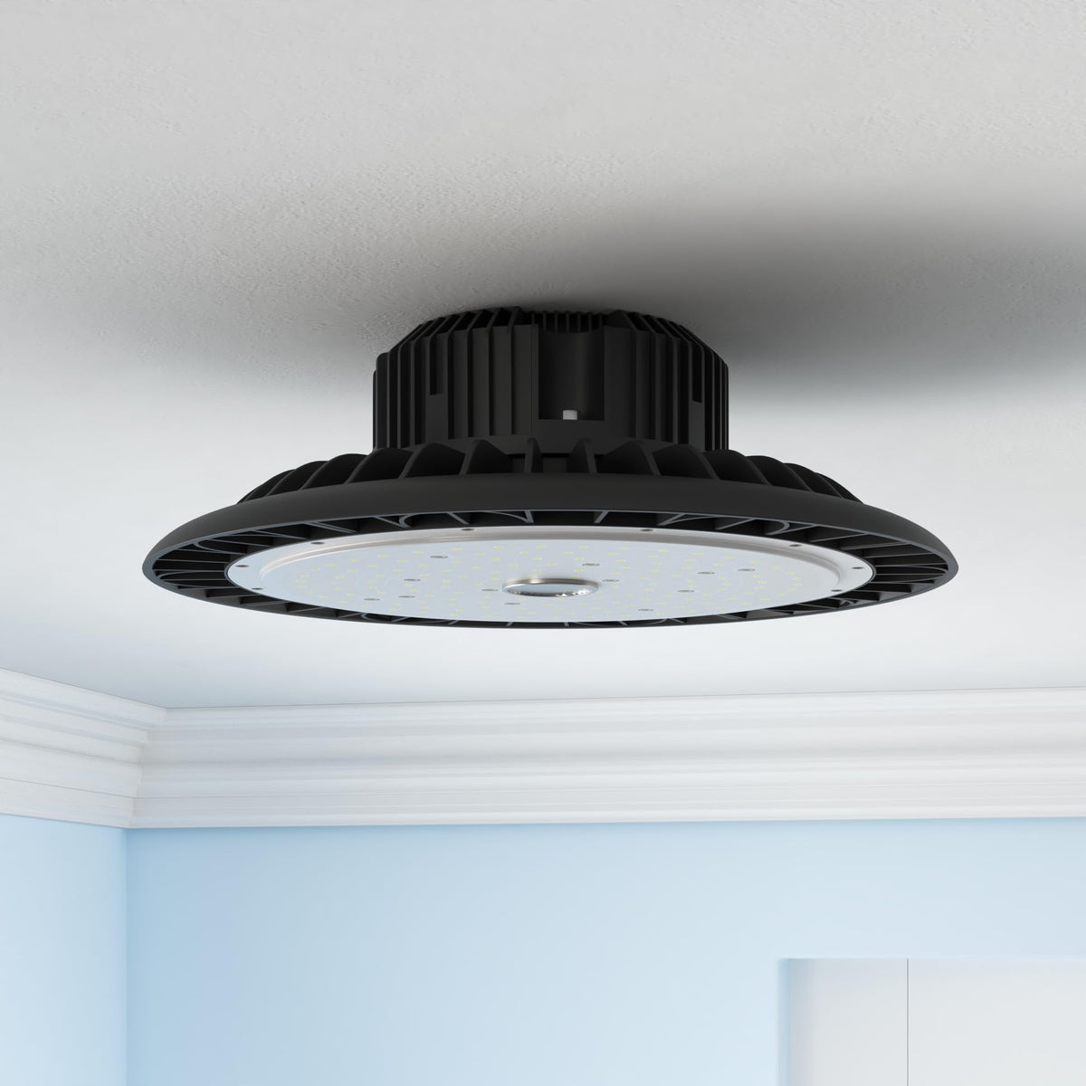 Q: How easy is it to install the UFO LED High Bay Light?A: Installation is quick and straightforward. The light comes with a 5-foot power cord and a built-in hook, allowing you to plug it directly into a power outlet without needing additional extensions.