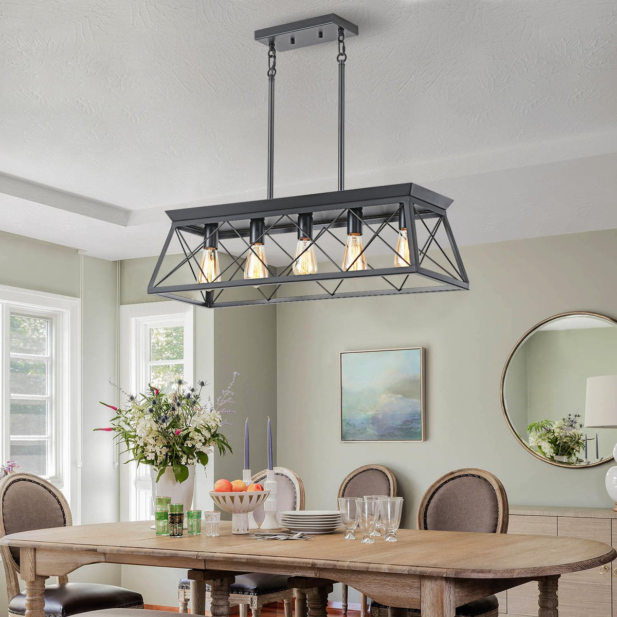 Huixute 5-Light Farmhouse Pendant Light For Dining Room, Rustic Kitchen Island Lighting, Adjustable Height Chandeliers For Kitch