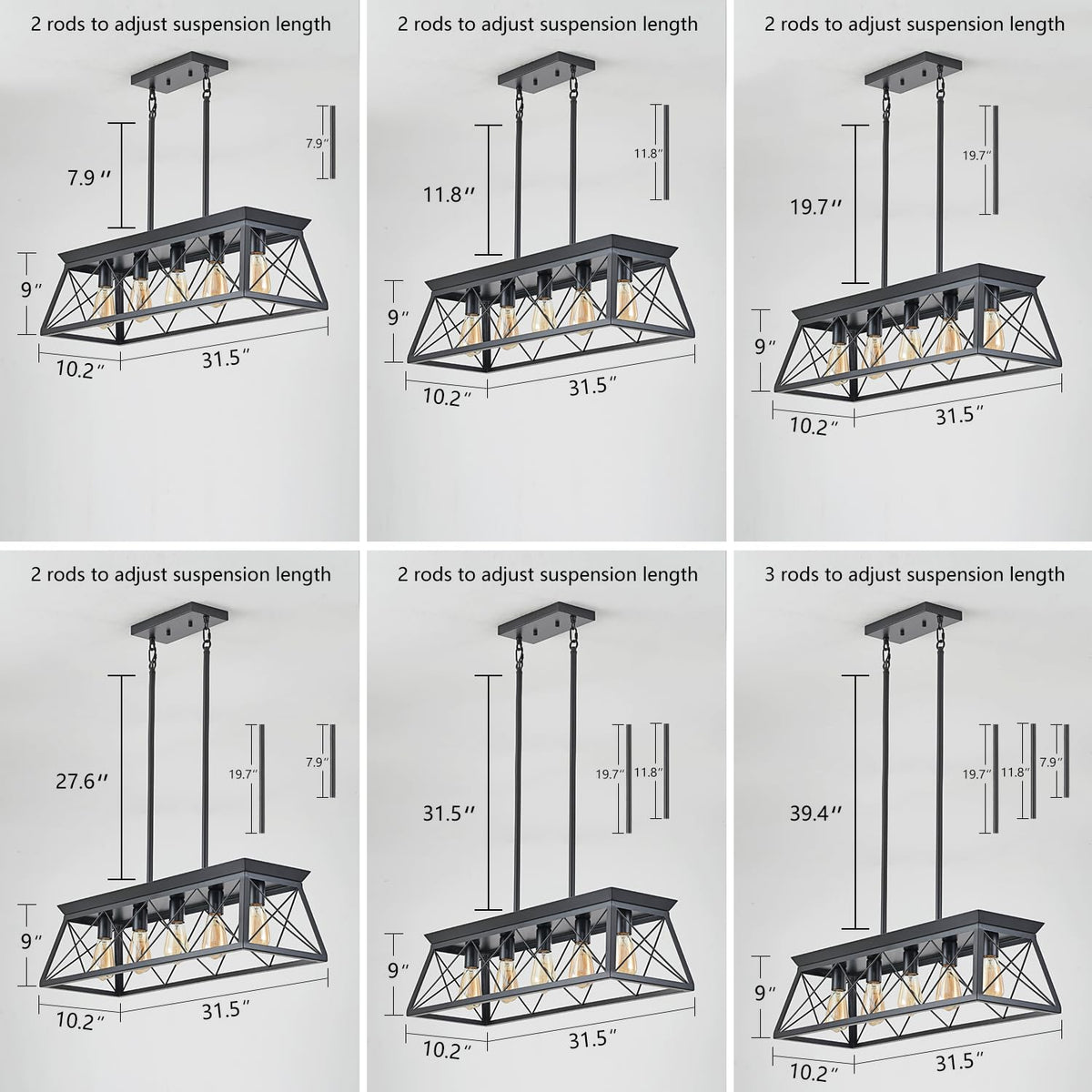 Specifications: Power Source: Hardwired Type: Farmhouse Pendant Light Input: 120V Long Life: 50,000H Bulbs: 5X E26(Not Included) Maximal Watts: Each 60W Main Body: 31.5 X 10.2 Inch Chains: Adjustable Weight: 8.8Lb (4Kg) Package Size: 33.5*12.2*10.6'' Note: Please Allow Slight Dimension Differences Due To Different Manual Measurements. Quick Installation! Compatible With Flat And Pitched Ceilings. Diy The Length As You Like. Perfect Size For Use. Very Simple And Matches All Decoration Style. Easy To Clean, Add No Burden To Housework. Package Includes: 1* Pendant Light 2* Screws 3* Wire Connectors 4* User Instruction