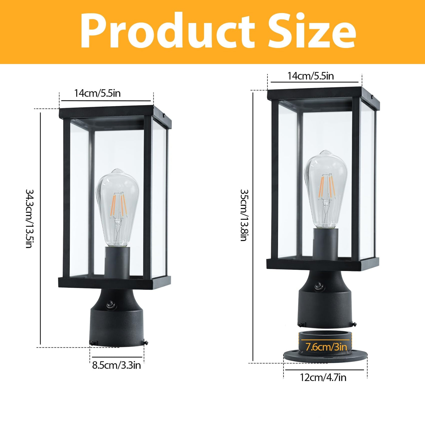 Q: Are the Hulitnag Outdoor Post Lights weather-resistant?A: Yes, these outdoor post lights are made from high-quality aluminum and tempered glass with anti-corrosion properties and weather-resistant features, ensuring reliable performance in various harsh weather conditions like heavy rain and strong winds.