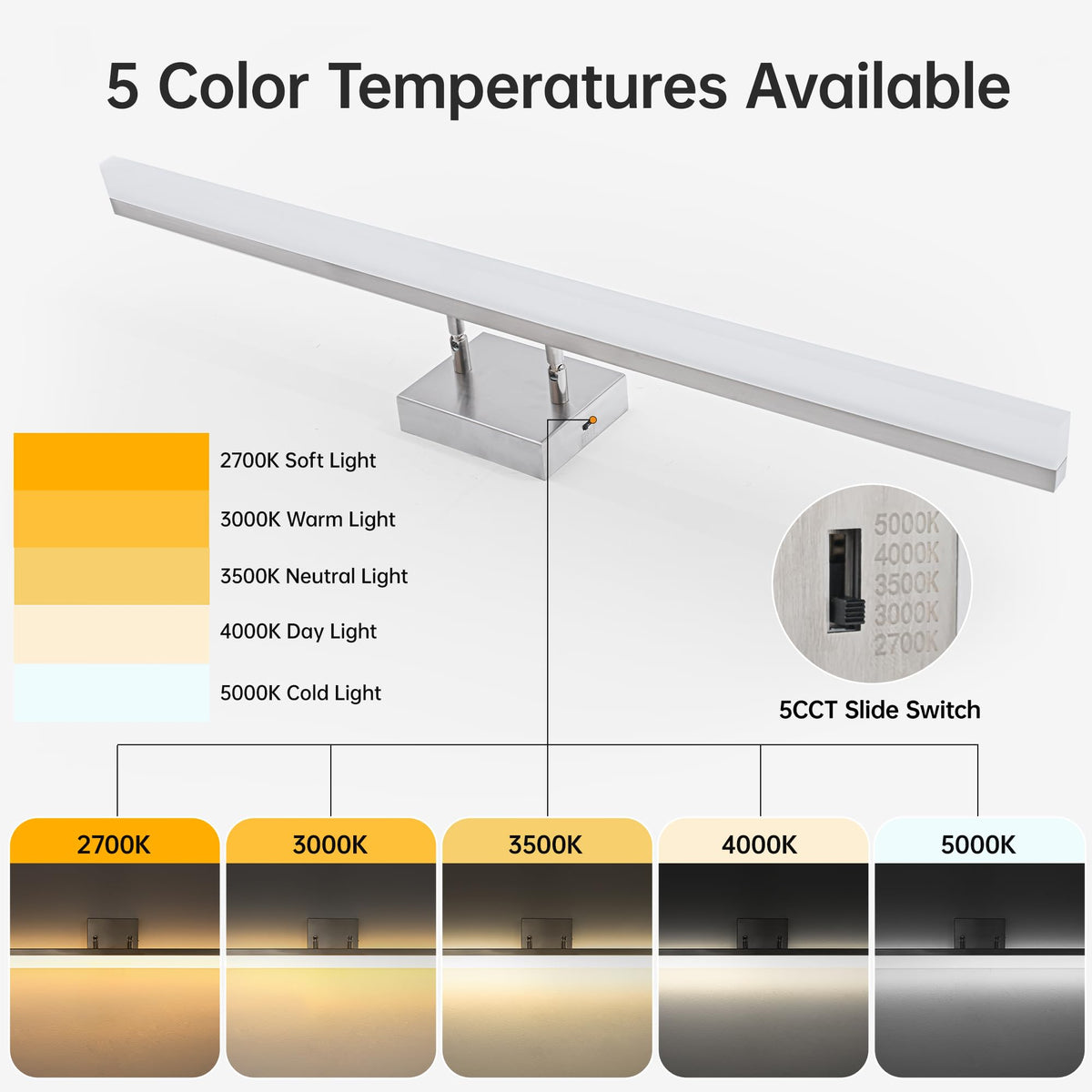 Humhold 36 Inch Bathroom Vanity Light, 5Cct Led Modern Bathroom Light Fixtures Over Mirror, Dimmable 36W 2700K-5000K Makeup Vani