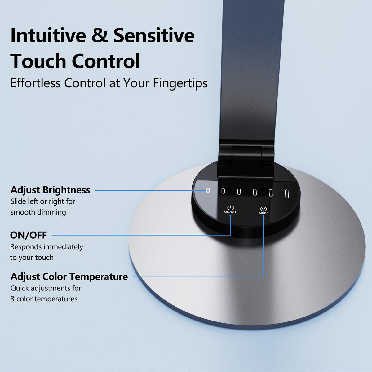 Humiieye Led Desk Lamp For Home Office, Foldable Desk Light Usb Charging Port Touch Control, 3 Color Temp, 6 Brightness, Metal T