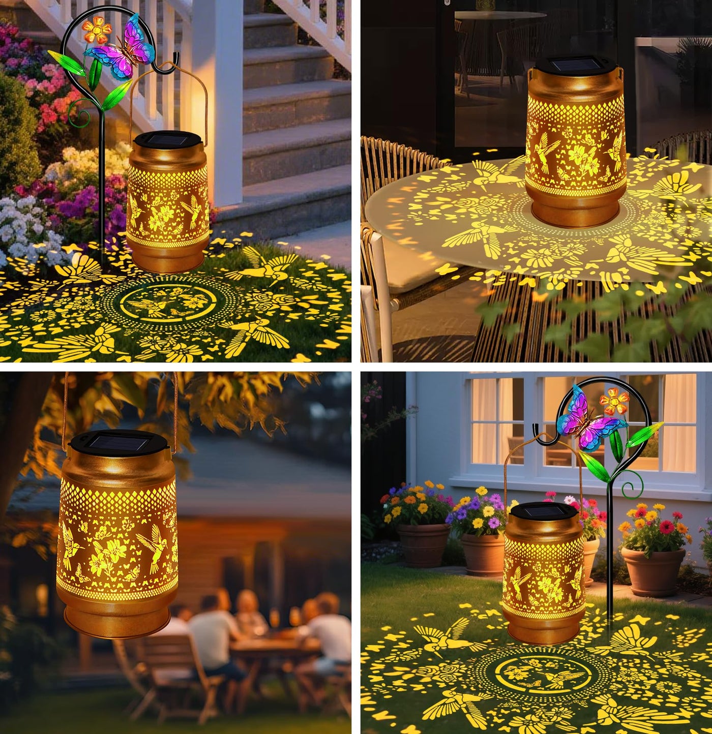 Hummingbird Solar Lantern With Butterfly Shepherd Hook Mom Gifts For Mothers Day & Birthday Hummingbird & Butterfly Design Outdoor Waterproof Metal Decor For Yard Patio Porch Lawn & Tabletop