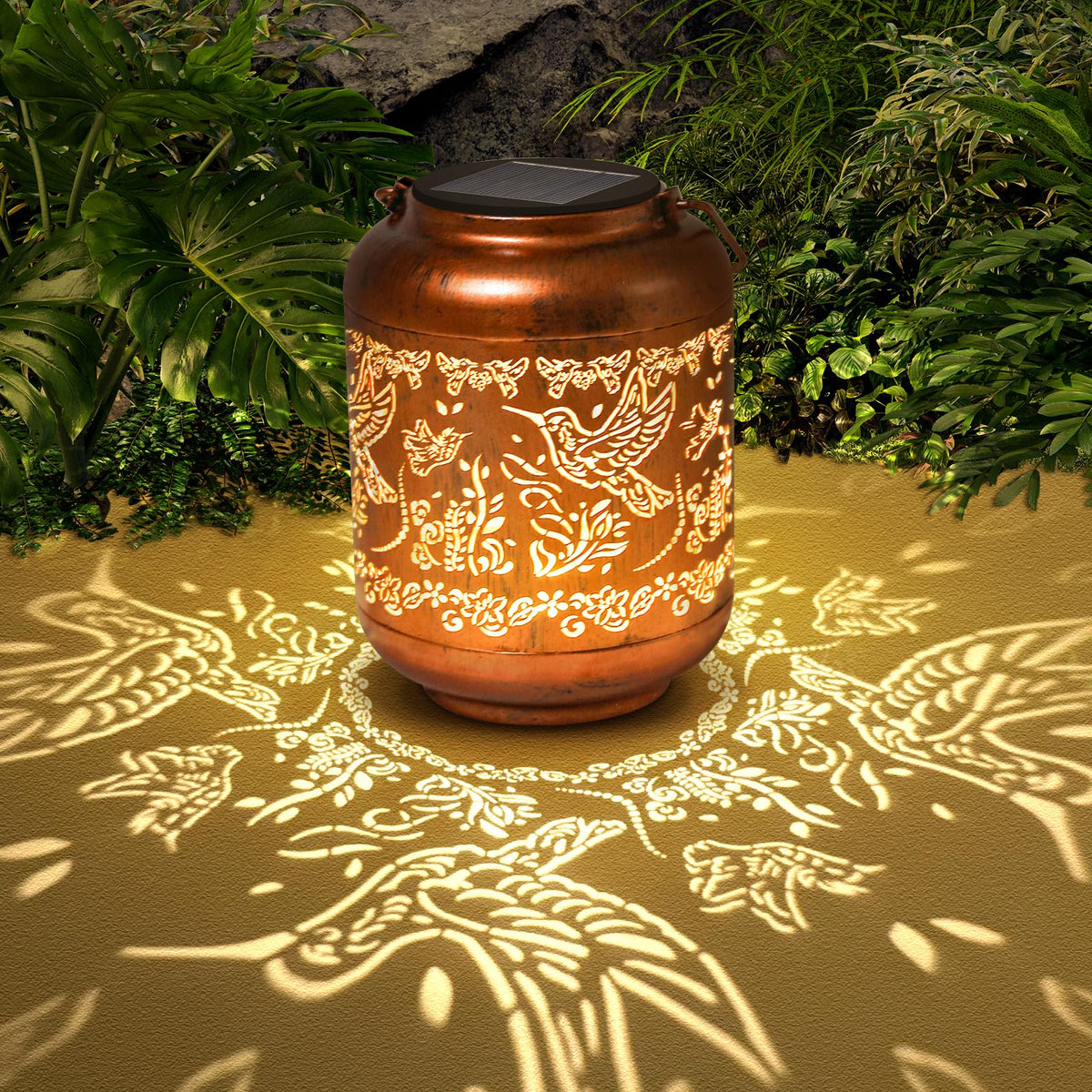 The Solar Outdoor Lantern Is Inspired By Animal Elements In Nature. It Projects Bright Hummingbird Patterns In The Dark, Creating A Gorgeous And Warm Atmosphere And Bringing Vitality And Fun To Your Garden.