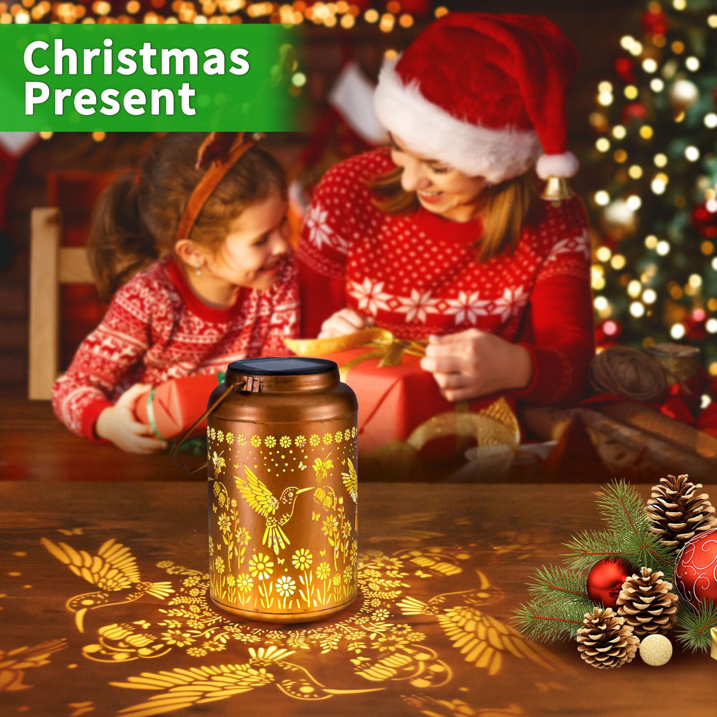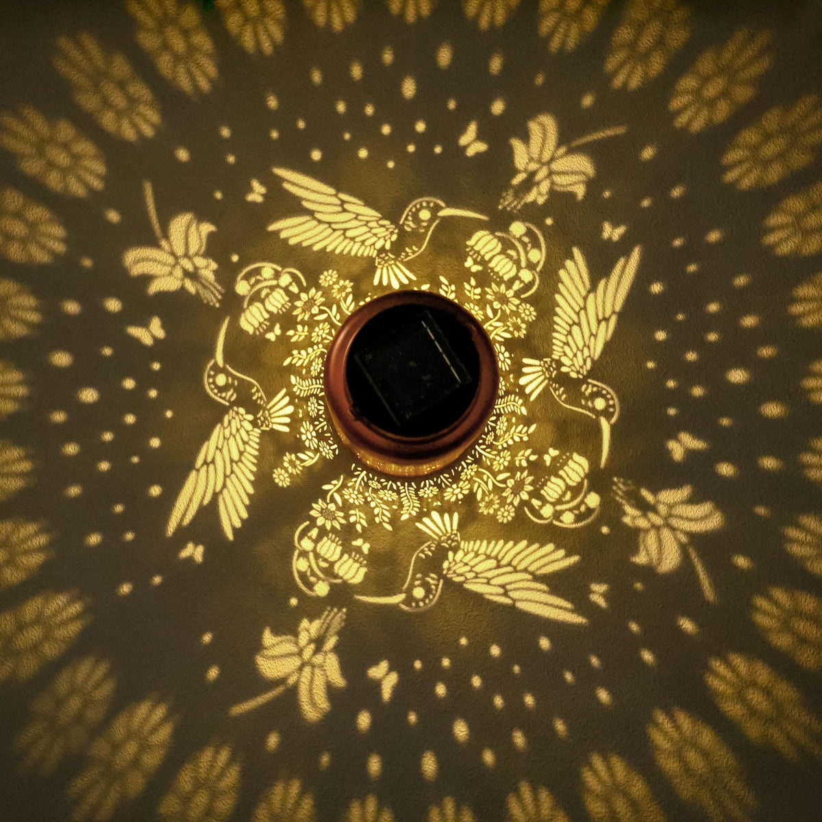 Excellent Solar Garden Lantern Will Cast Beautiful Patterns On The Wall Or Lawn With Its Hummingbird Out Design,At Darkness, Decor Solar Lantern Casting A Bright Captures The Elegance And Beauty Of Creating A Warm And Welcoming Atmosphere. Durable And Decorative Your Solar Garden Lanterns Can Be Placed Flat On The Grass Or Ground, Hung On Branches Or On The Wall Perfect Courtyard, Terrace, Balcony, Home ,Outdoor,Gerden,Yard,Decoration For Wedding Halloween Party,Birthday Gifts For Women Mom Grandma Sister Friendship Friends Housewarming Christmas Gifts.