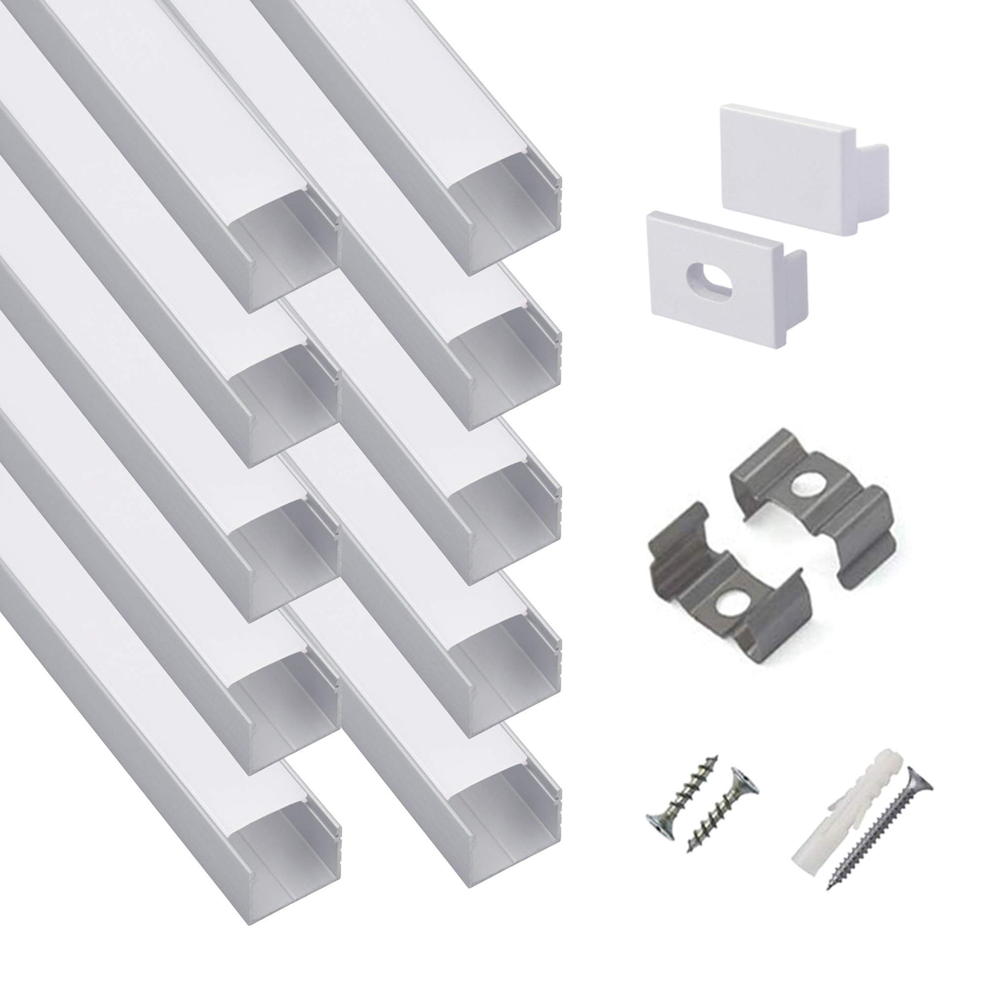 Hunhun 10-Pack 6.6Ft/ 2Meter Plus-Size U Shape Led Aluminum Channel System With Milky Cover, End Caps And Mounting Clips, Aluminum Profile For Led Strip Light, Special For Philips Hue Strip