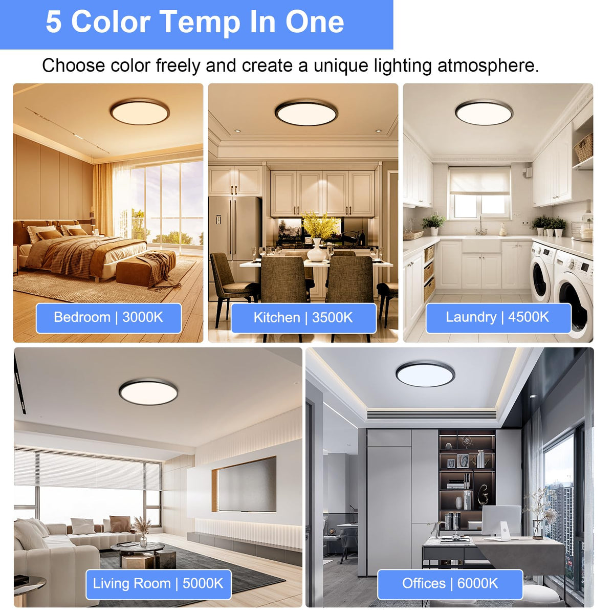 Equipped with a practical dimmable feature, this LED fixture works with most dimmer switches (dimmer not included) to allow you to adjust the brightness from 5% to 100%. Whether you need a bright light for tasks or a soft ambiance for relaxation, this fixture provides the flexibility to meet your lighting needs. Additionally, the light offers five different color temperature options, including daylight (5000K) for workspaces and warm white (3500K) for cozy dining settings, allowing you to tailor the atmosphere to your preferences.