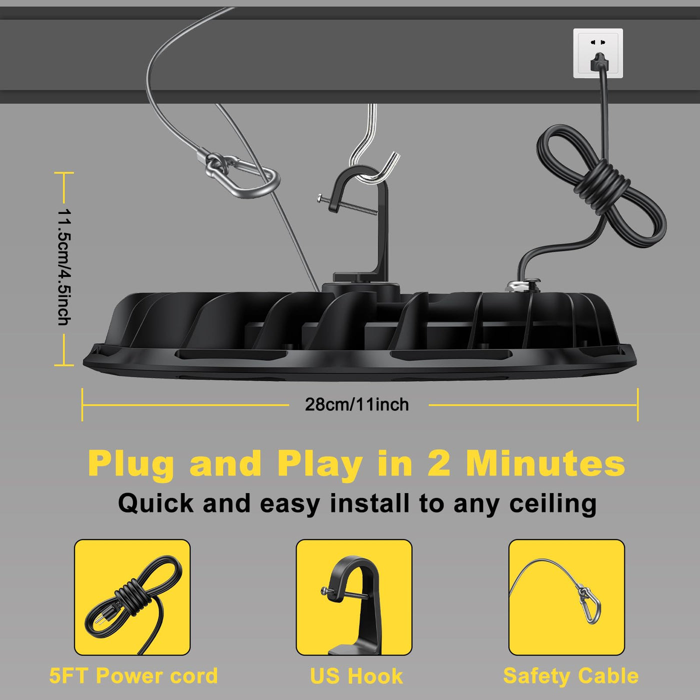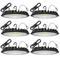 Hunhun 6 Pack 155W Ufo Led High Bay Light 22,500Lm 5000K Led High Bay Lights 5' Cable With Plug Ac110-277V Waterproof Ufo Lights For Garage Shop Factory Warehouse Etl Listed