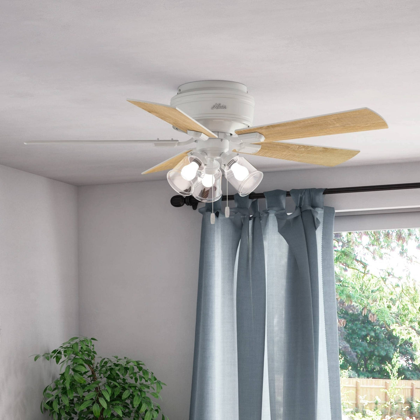 Hunter Fan Company, 54207, 52 Inch Crestfield Fresh White Low Profile Ceiling Fan With Led Light Kit And Pull Chain