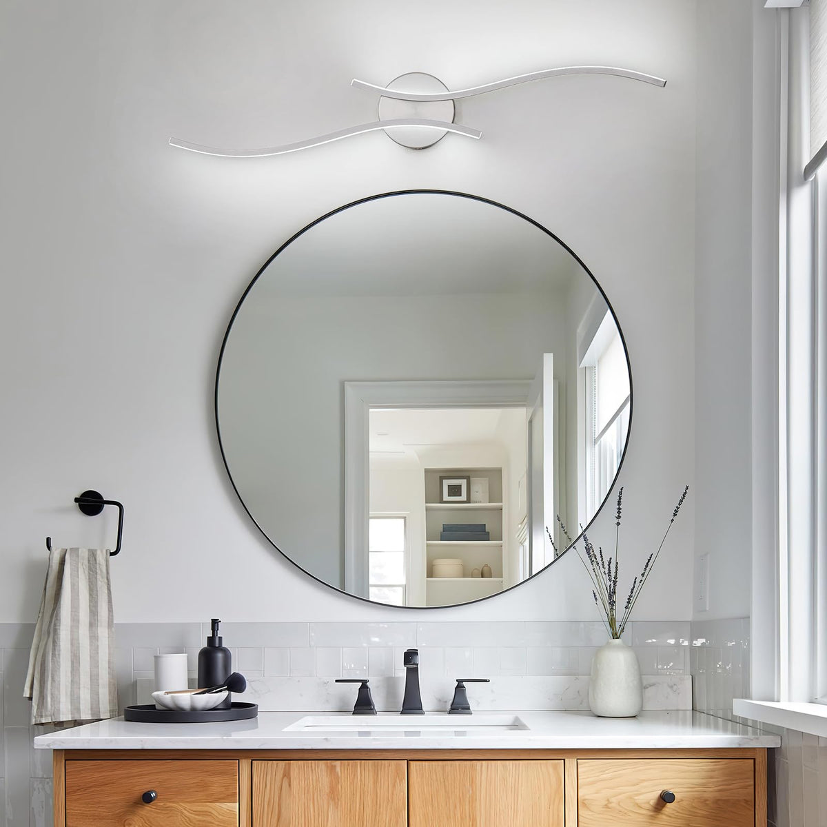 This Modern Led Bathroom Vanity Light Features A Sleek S-Curve Design That Not Only Adds Functionality But Also Enhances The Aesthetics Of Your Bathroom. It Can Be Installed Horizontally And Vertically Making It Suitable For Bathrooms With Different Decor Styles. WhatS More You Can Adjust The Lighting Brightness To Cater To Your Different Lighting Needs. Whether YouRe Getting Ready In The Morning Or Relaxing In The Bathtub At Night This Lamp Will Provide You With The Most Comfortable Lighting Experience.