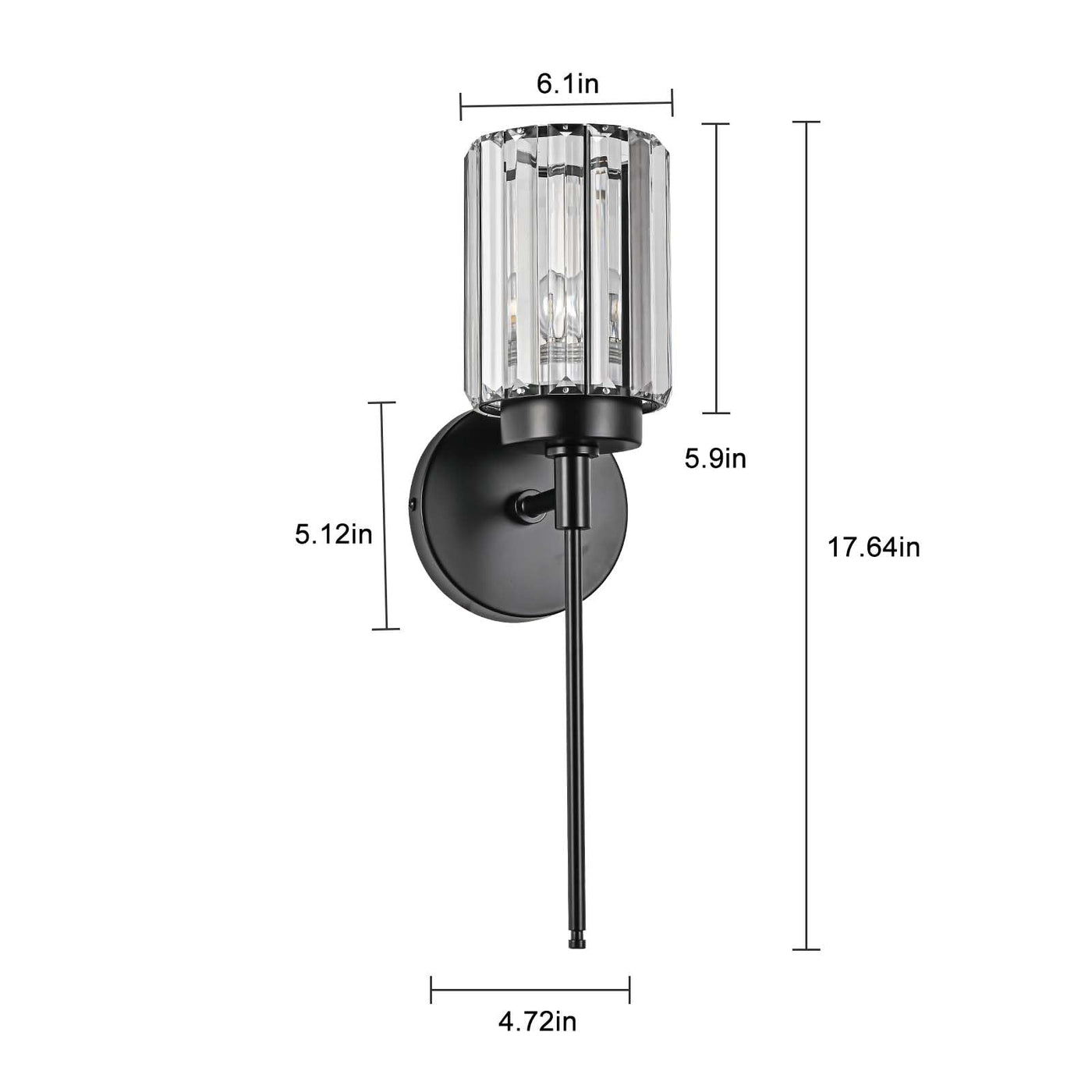 Huoku Single Black Wall Sconce, Modern Crystal Vanity Lighting Fixture With Crystal Shade, 1-Light Wall Lamp For Bathroom Bedroo