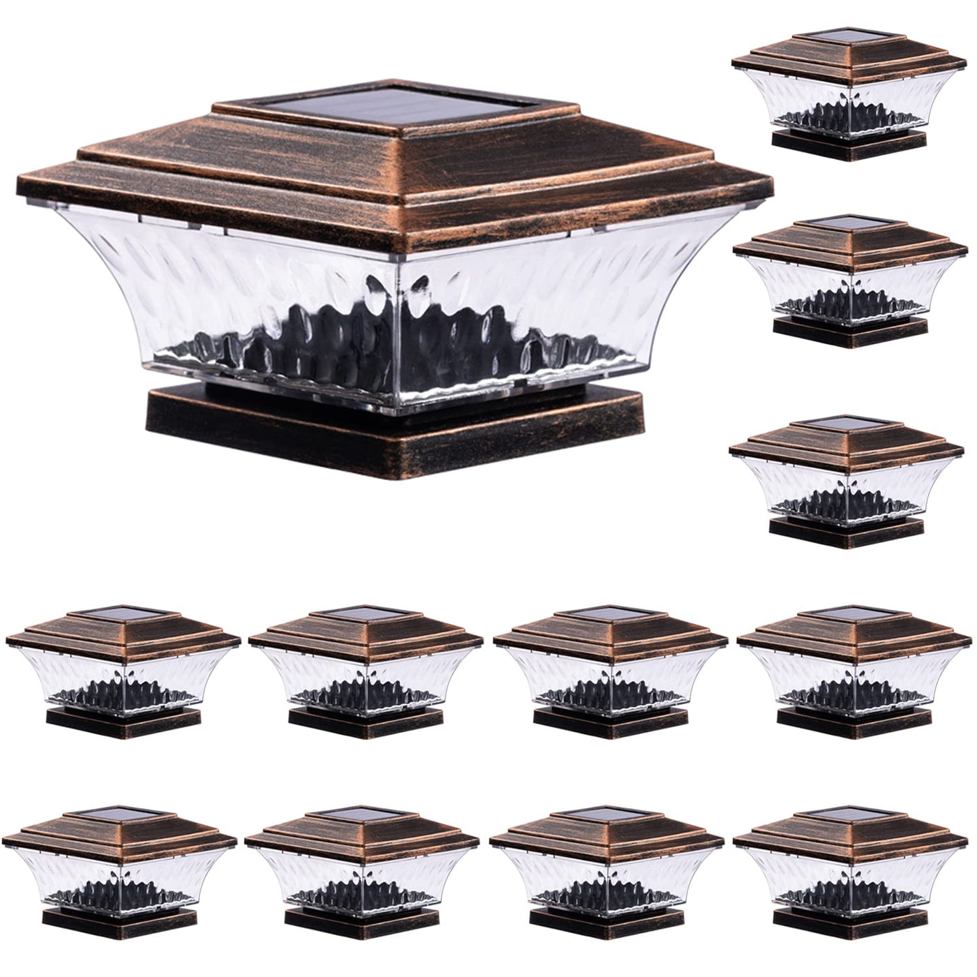 HUYIENO Solar Post Cap Lights LED Deck Fence Light 12pk Brushed Copper Warm White/Bright White Plastic