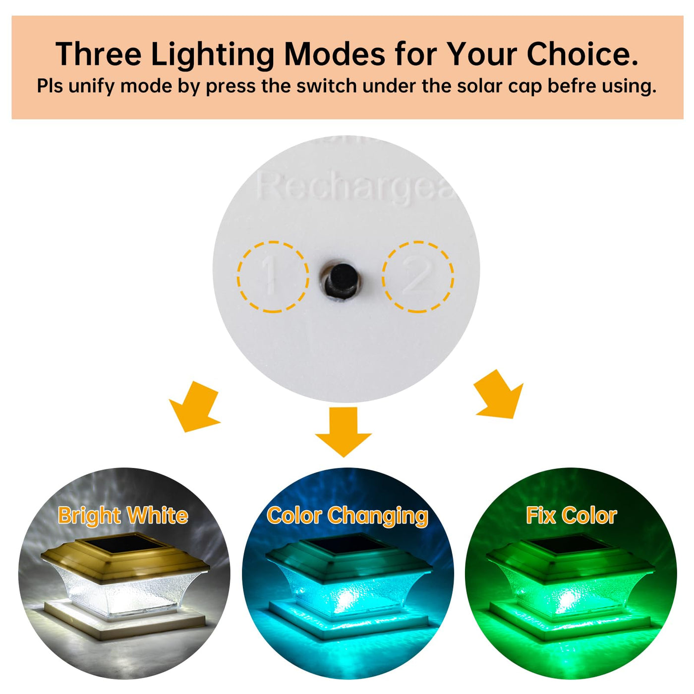 HUYIENO Solar Post Cap Lights Outdoor LED Lighting Deck Fence Cap Light 9 Light Modes Bright White/7 Color Fixed Modes/7 Color C