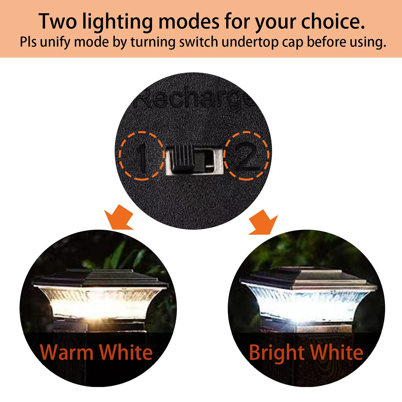 Two Lighting Choices: Choose between warm white and bright white modes to create the desired atmosphere. Ensure both lights are set to the same mode for uniform LED color.