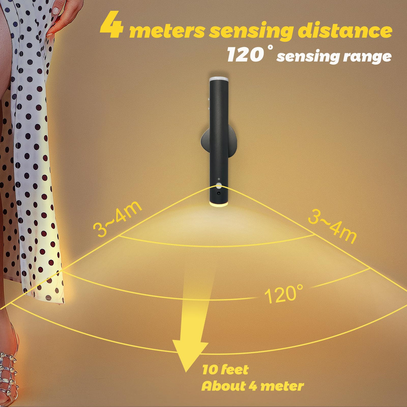 Q: How does the motion sensor work for this night light?A: The motion sensor automatically activates the light when it detects human movement within 14 feet in dark environments. It will turn off after 15 seconds of no movement, ensuring energy efficiency.