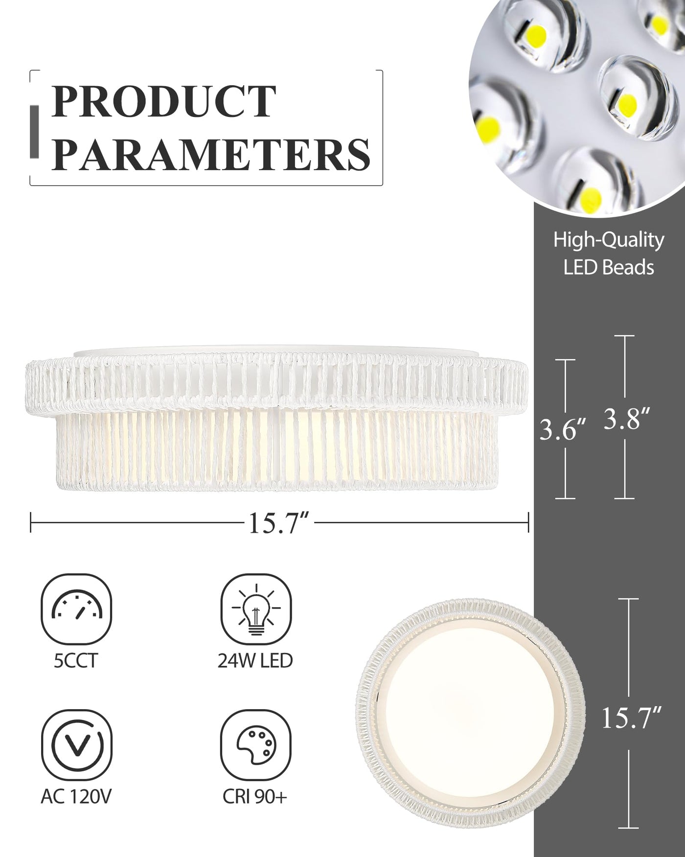 Dimensions: The flush mount light measures 15.7in x 15.7in x 3.8in (L x W x H), making it suitable for various ceiling heights and room sizes.