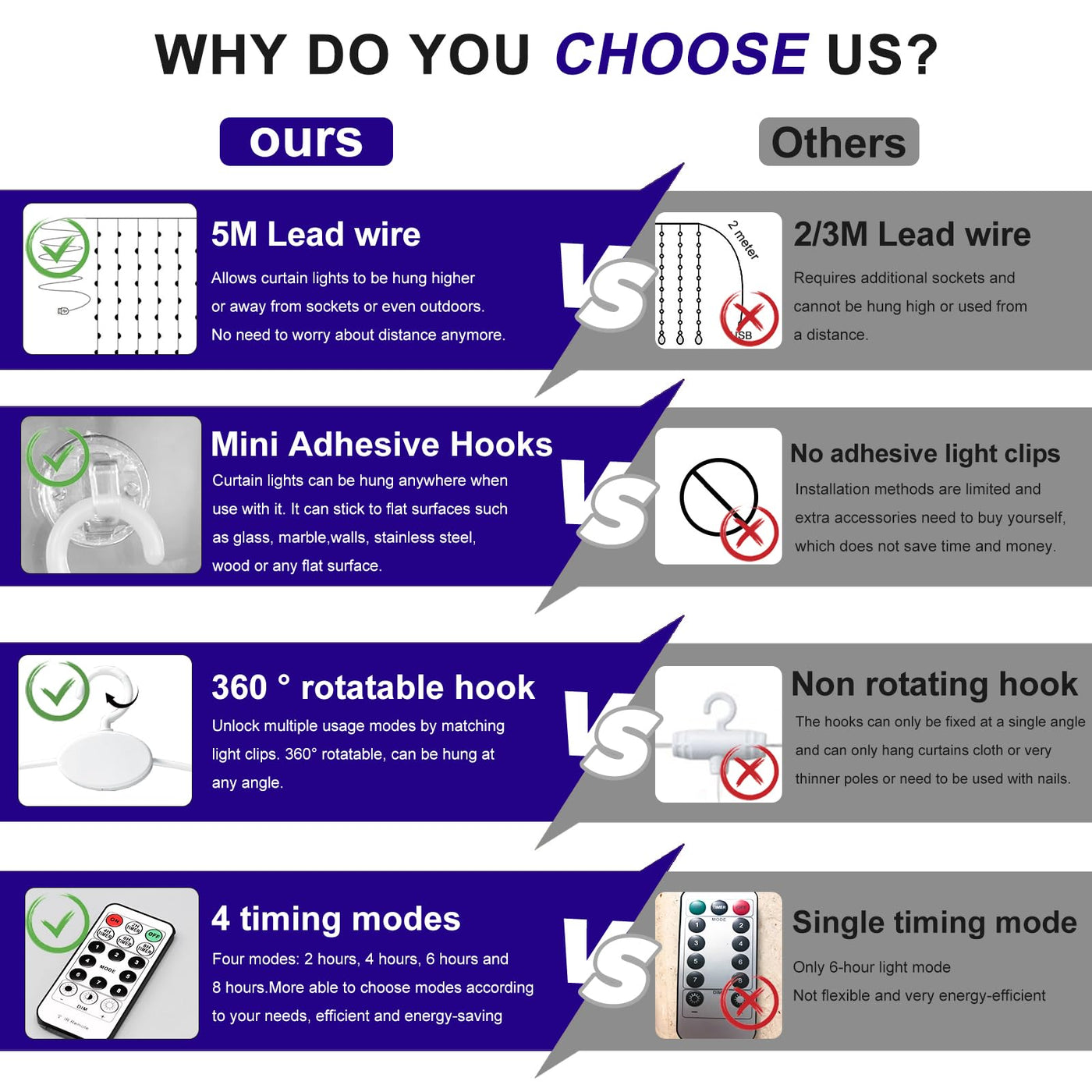 S type hanging, adjustable height, you can control the length of stretched lamp string, and the 10 hangers can be drawn to different heights to form your own style.