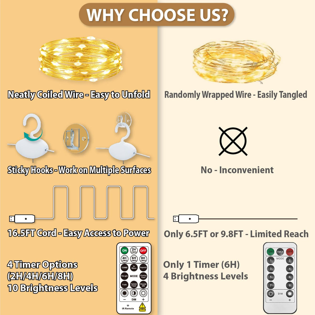 The HXWEIYE Curtain String Lights feature a professional upgrade that allows for adjustable height and customizable designs. The S-type hanging mechanism enables users to control the length of the string, letting you create your desired look with ease. With 10 hangers included, you can position the lights at different heights to suit your style. The double light clips eliminate the need for additional accessories, allowing for effortless installation on curtains, walls, or glass surfaces. The 16.5ft (5m) lead gives you ample length to connect to a distant socket without concern for accessibility.