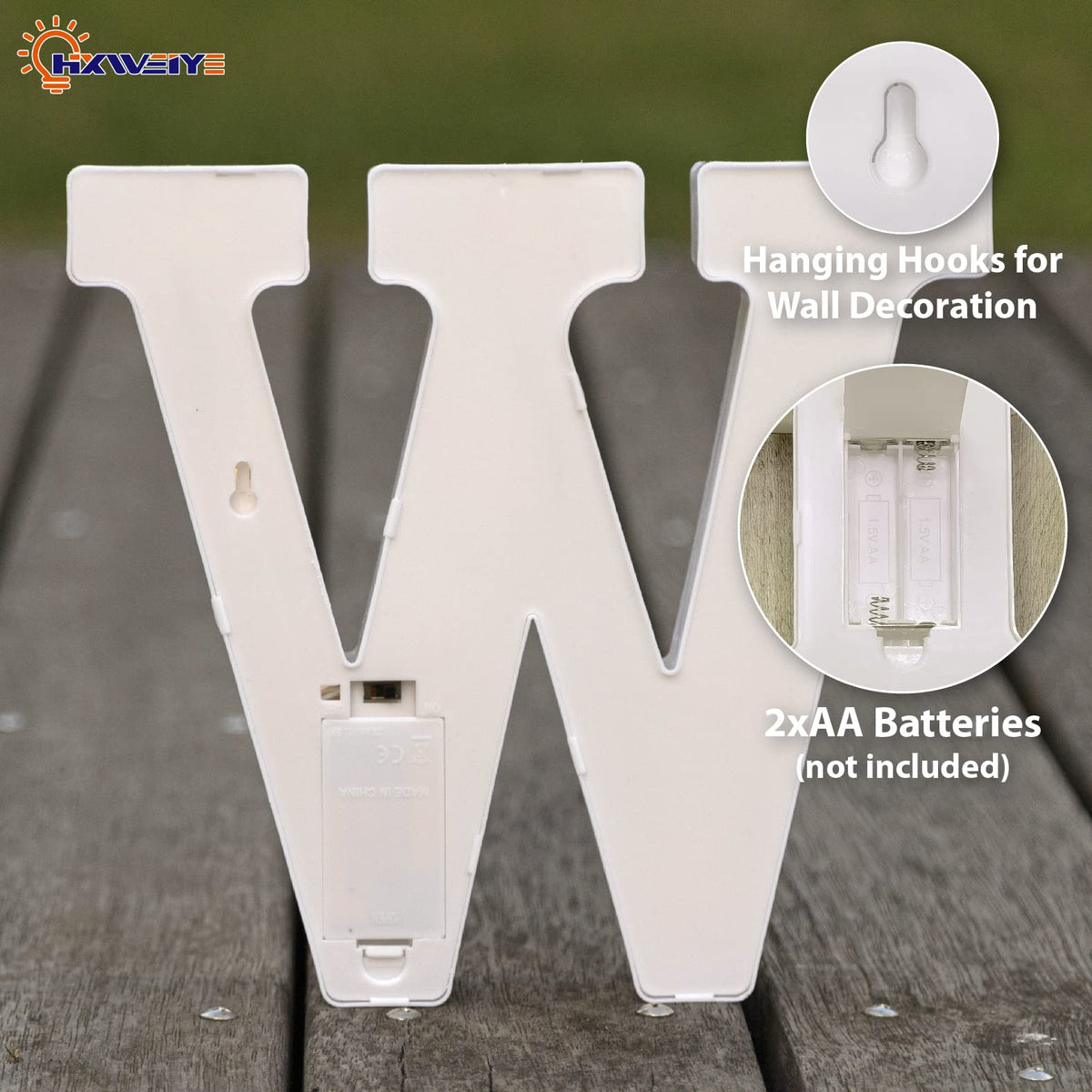 Q: What are the dimensions of the HXWEIYE Light Up Letters?A: The marquee letters measure approximately 9 inches in length, 9.8 inches in width, and 1.8 inches in height, making them a perfect size for both indoor and outdoor decorations.