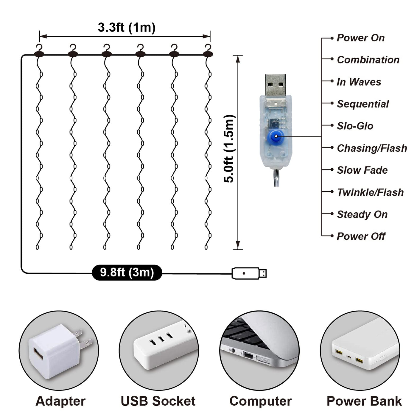Hxweiye Short Curtain Lights For Small Window, 3.3X5Ft Usb Plug In Warm White Fairy Light With Timer & 8 Clips For Bedroom, 96Led String Light For Bedroom Indoor Weddings Party Garden Wall Décor