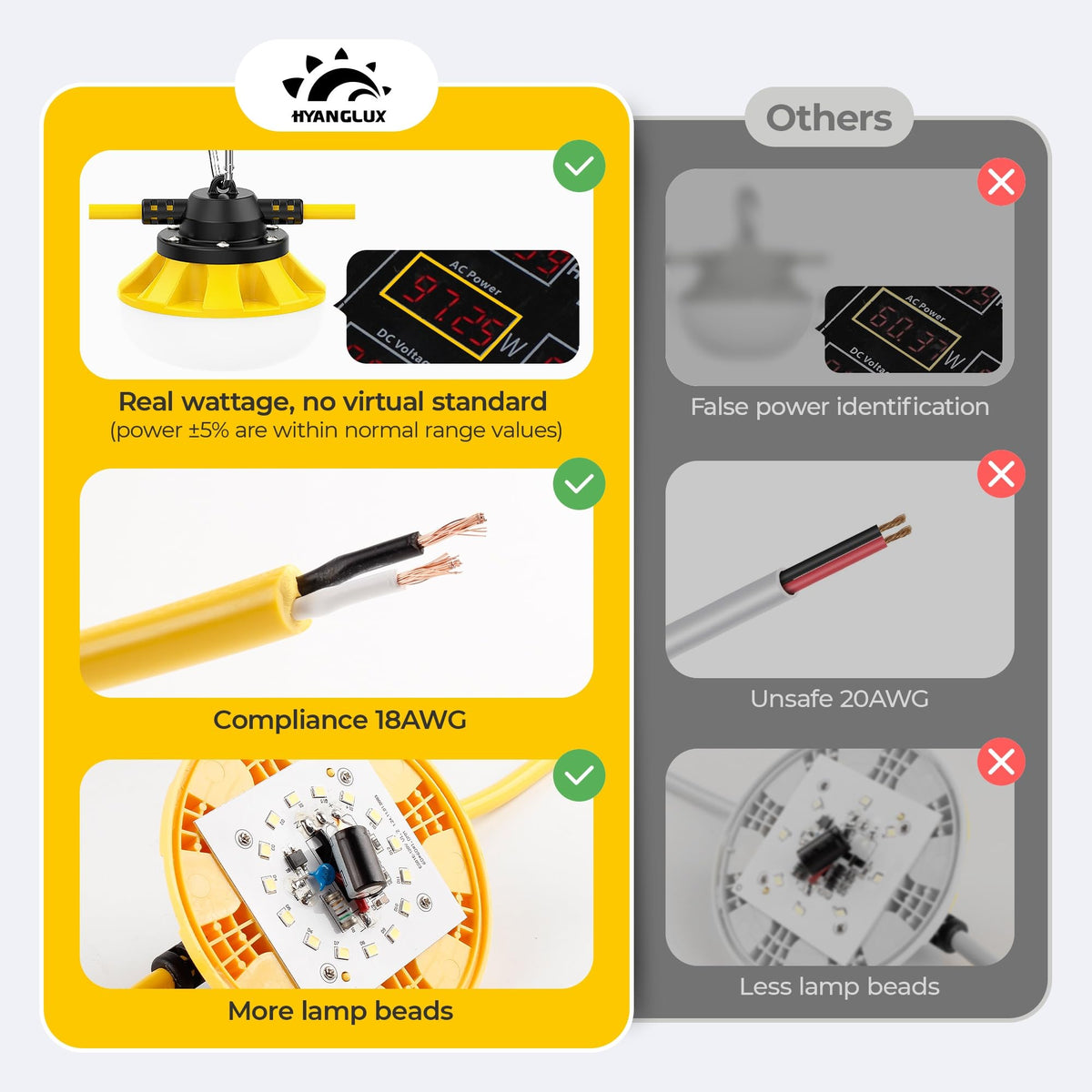 Hyanglux 100Ft Construction String Lights: 100W 11000Lm Etl Certified Bright Industrial Outdoor Temporary Lighting Led Hanging I