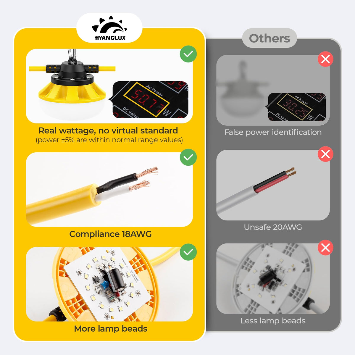 Hyanglux 50Ft Construction String Lights: 50W 5500Lm Etl Certified Bright Industrial Outdoor Temporary Lighting Led Hanging Ip65