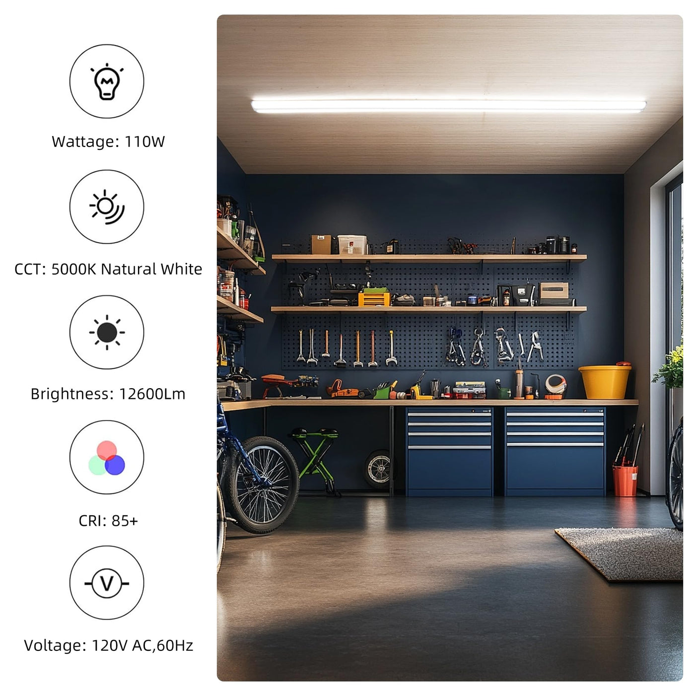 hykolity 110W LED Shop Lights Ultra Slim Wraparound 8FT Flush Mount 12600lm 5000K White 2 Pack WRC-1082