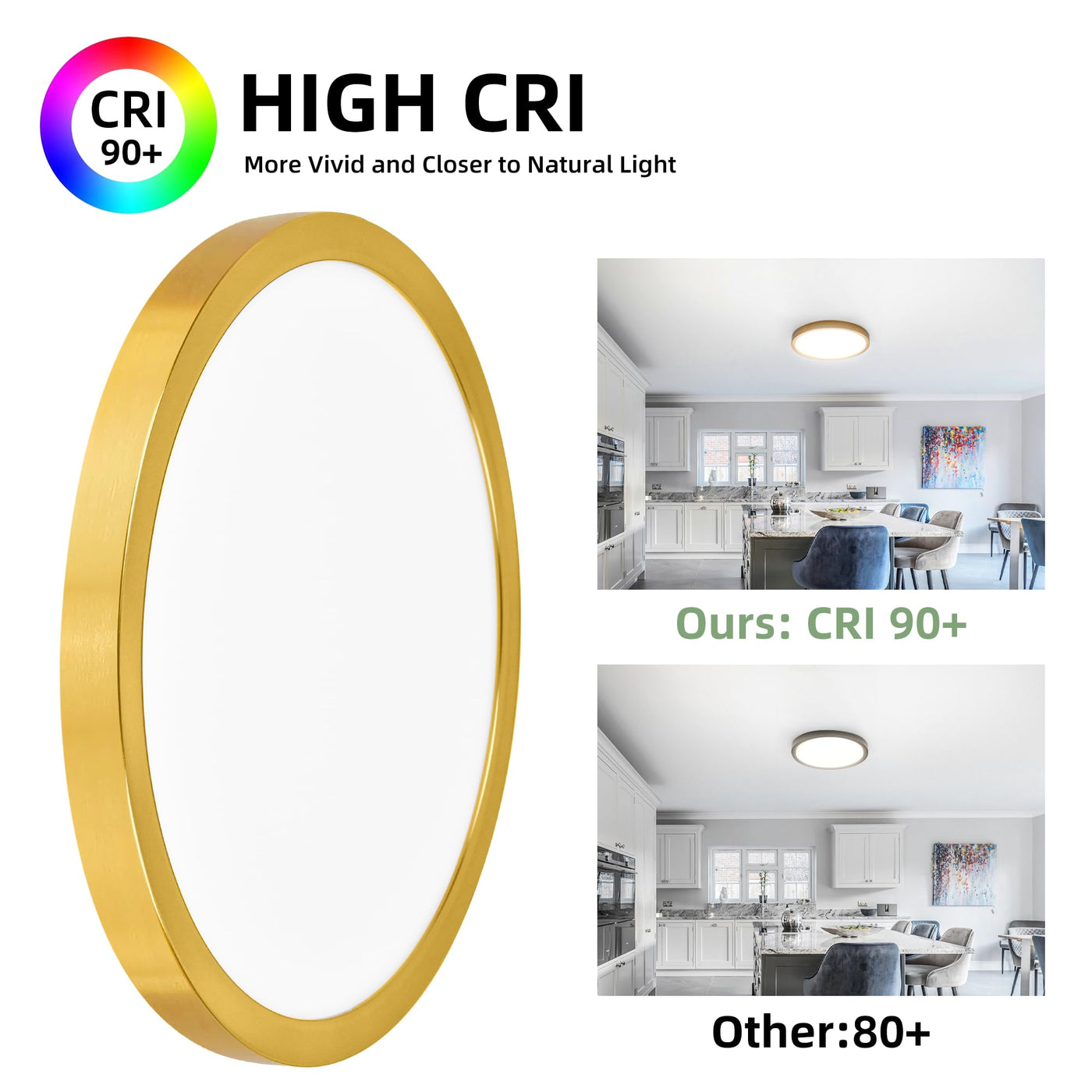 hykolity 12 Inch LED Round Flat Panel Light, 24W Selectable CCT 3000K/4000K/5000K, Gold Finish, Model DYXDD300