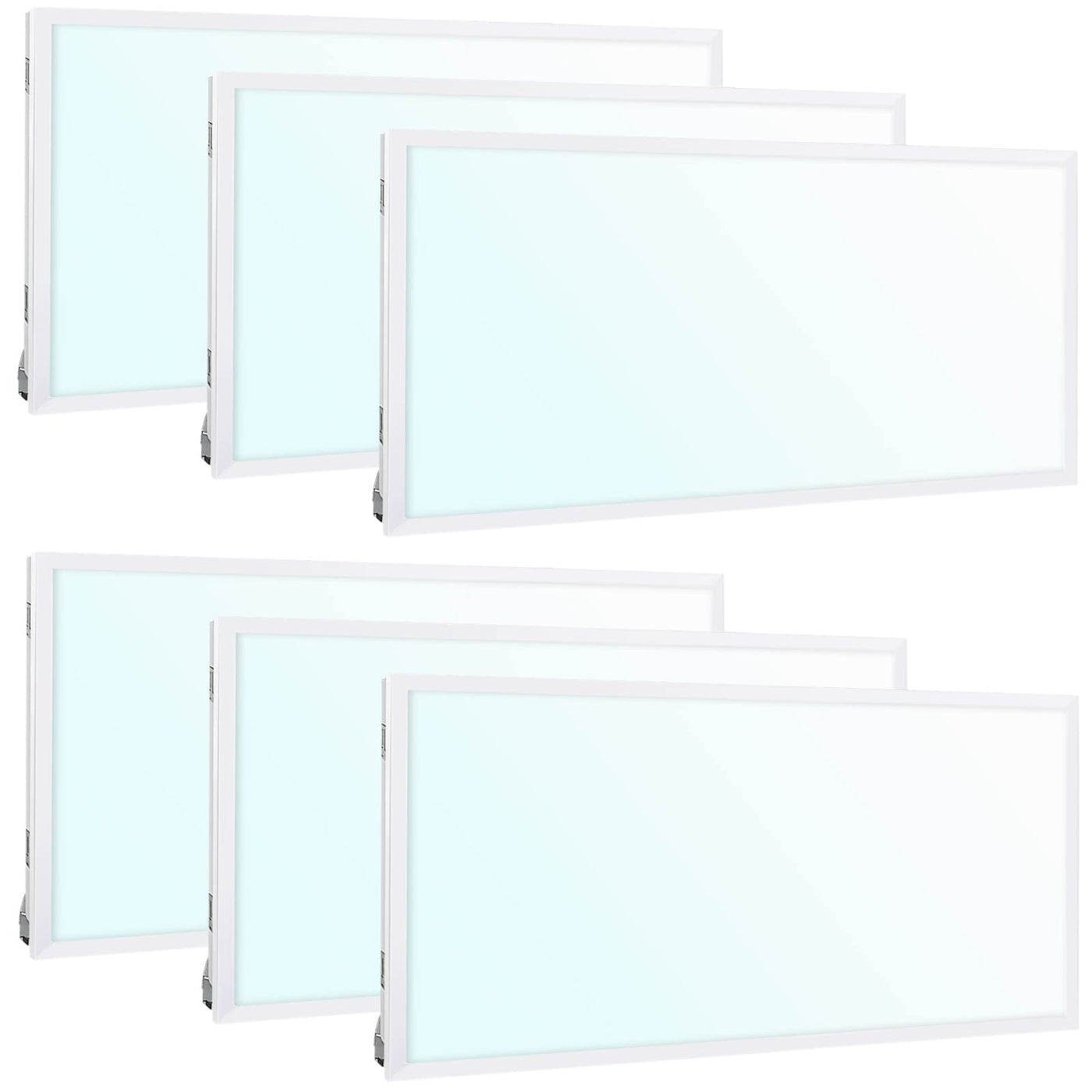 6 Pack 2x4 FT White LED Flat Panel Troffer Light, 405060W 4000K5000K6500K Recessed Back-Lit Drop ceiling Light