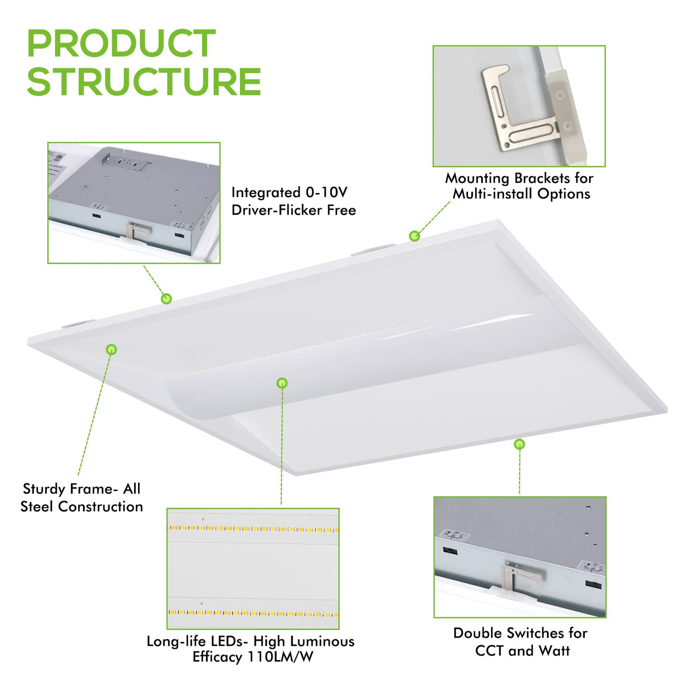 Hykolity 2X4 Led Troffer Panel Light, 36W/42W/50W,3500K/4000K/5000K Tunable, 0-10V Dim For Led Drop Ceiling Light Fixture,Led Tr