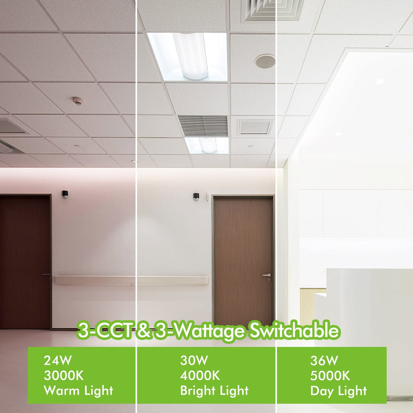 Q: What are the adjustable wattage options for the hykolity 2x4 LED Troffer Panel Light?A: The hykolity 2x4 LED Troffer Panel Light offers three adjustable wattage options: 36W, 42W, and 50W. This flexibility allows you to choose the appropriate wattage based on your lighting needs and energy efficiency preferences.