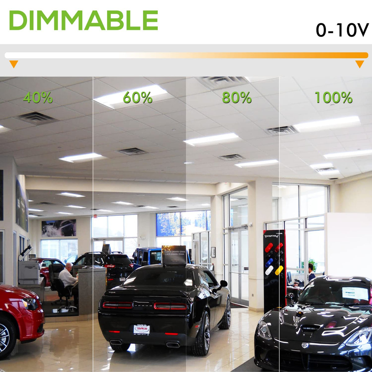 Q: Can the brightness of this LED troffer light be adjusted?A: Yes, the hykolity LED Troffer Panel Light features a flicker-free 0-10V dimmable driver, which allows you to adjust the brightness from 100% to 10%. This capability helps create a pleasant atmosphere suitable for various environments.
