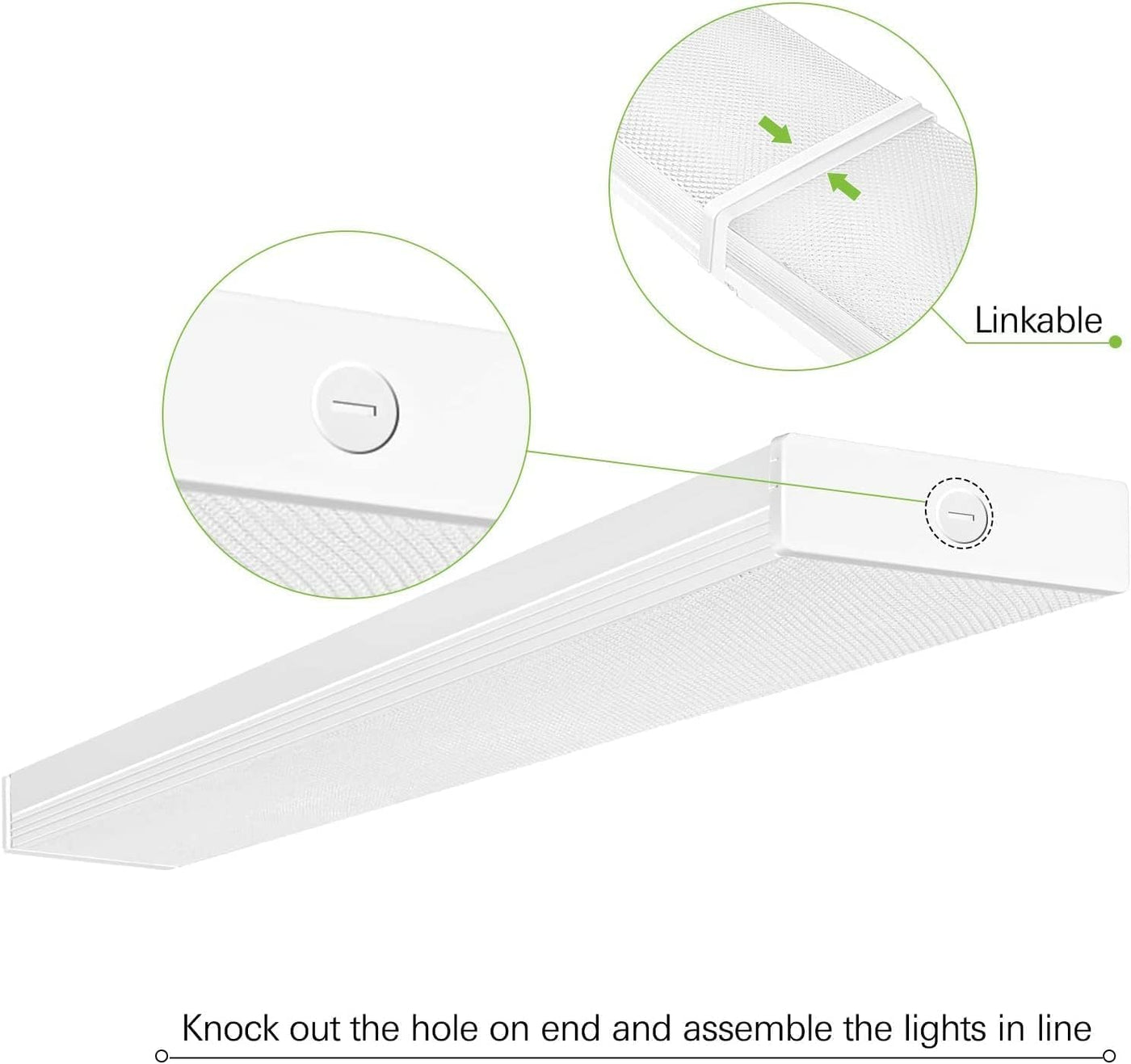 Q: What applications are suitable for the Hykolity 4FT LED Wraparound Light?A: The 4FT LED Wraparound Light is perfect for various applications including garages, offices, workshops, workbenches, kitchens, basements, closets, storage rooms, warehouses, and hallways.