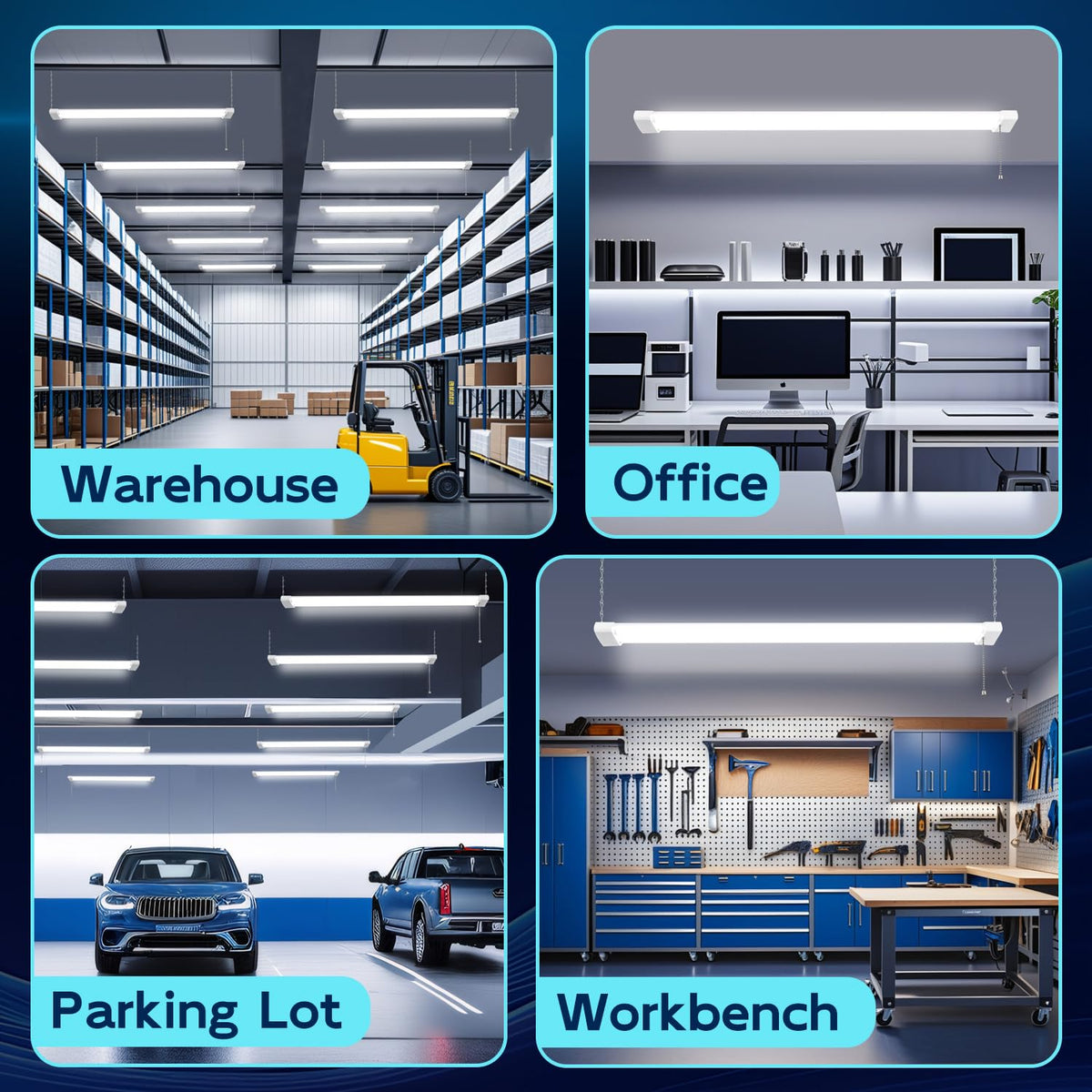 Hykolity 4 Pack 4Ft Linkable Led Shop Light For Garage 6500Lm 4Ft 60W Utility Light Fixture 5000K Daylight Led Workbench Light With Plug Hanging Or Surface Mount White - Etl