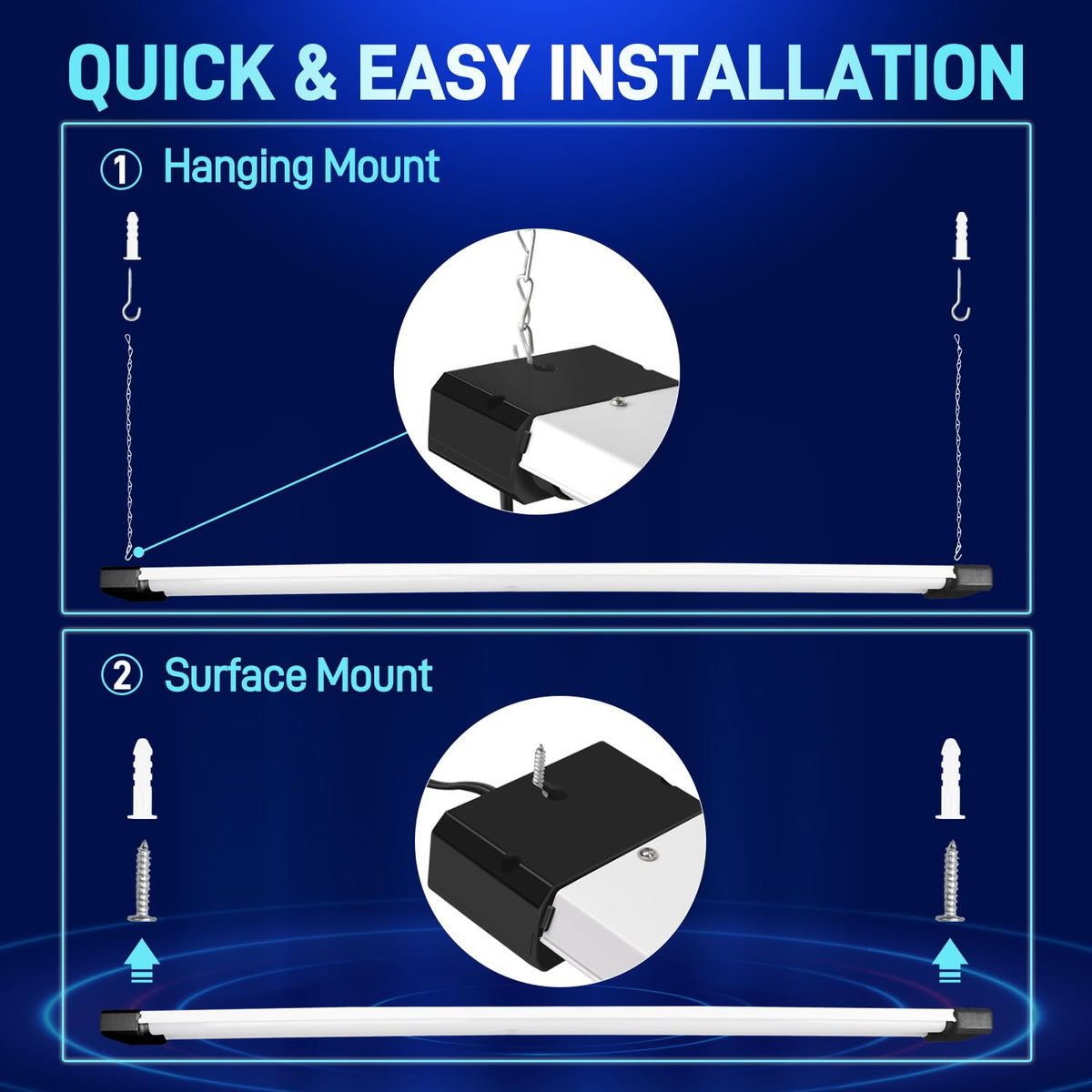 The hykolity 4 Pack 4FT Linkable LED Shop Light is designed for versatile use in garages, workshops, workbench areas, storage spaces, and more. This powerful lighting solution provides excellent illumination for a variety of tasks, ensuring safety and efficiency in your work environment.