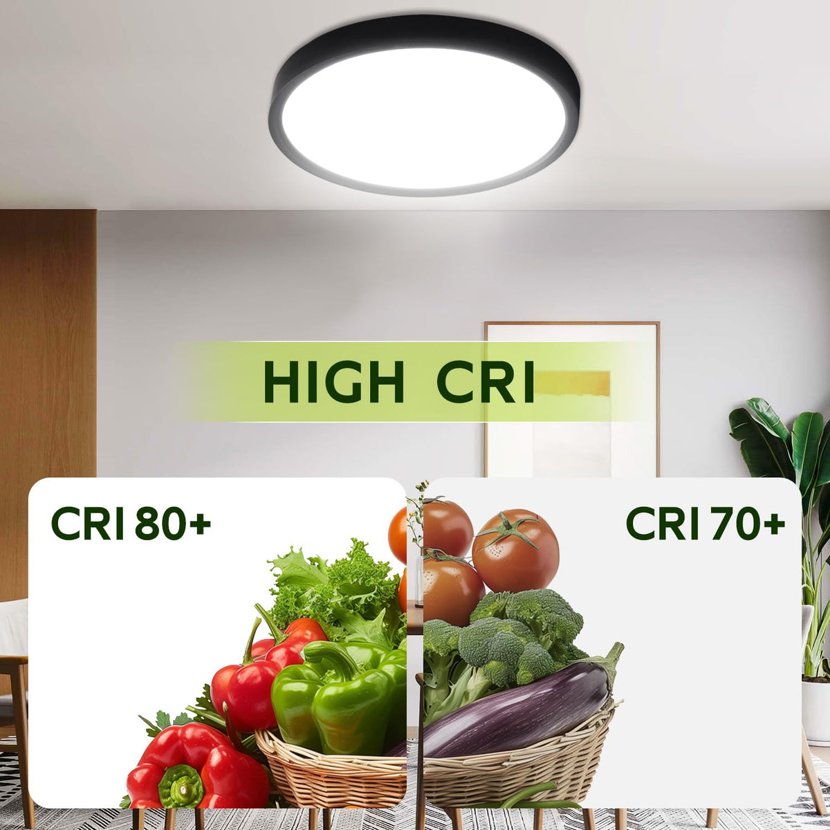 The hykolity 9 Inch Selectable CCT LED Round Flat Panel Light is an ideal lighting solution for various indoor spaces including kitchens, bedrooms, laundry rooms, and closets. This energy-efficient fixture combines modern design with practical functionality, providing bright illumination while enhancing the aesthetic of your home.