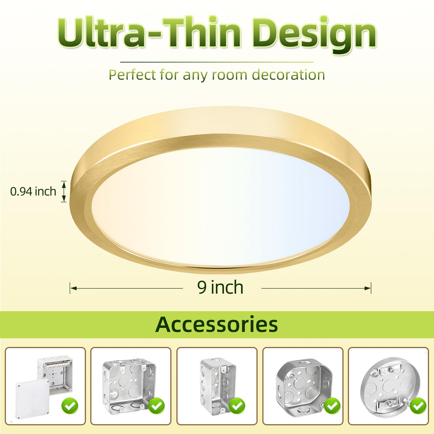 hykolity LED Round Flat Panel Light 9 Inch 18W 1800LM Selectable CCT 3000K/4000K/5000K Gold Model DYXDD230