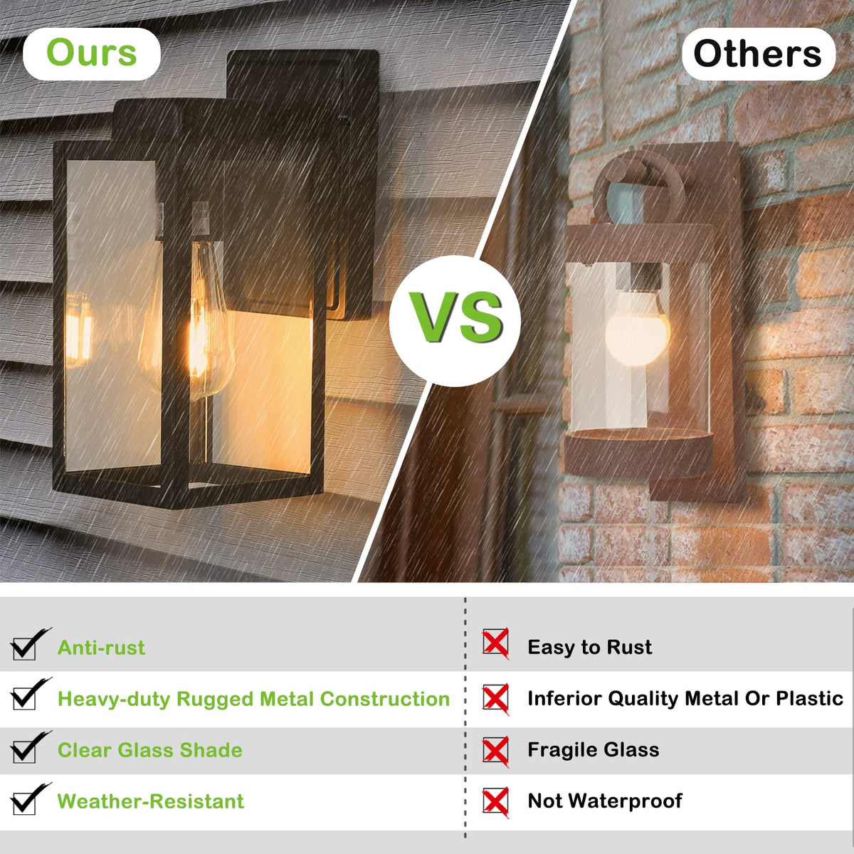 Hykolity Outdoor Wall Lantern, Waterproof Exterior Wall Sconce Light Fixture, Anti-Rust Wall Mount Light With Clear Glass Shade,