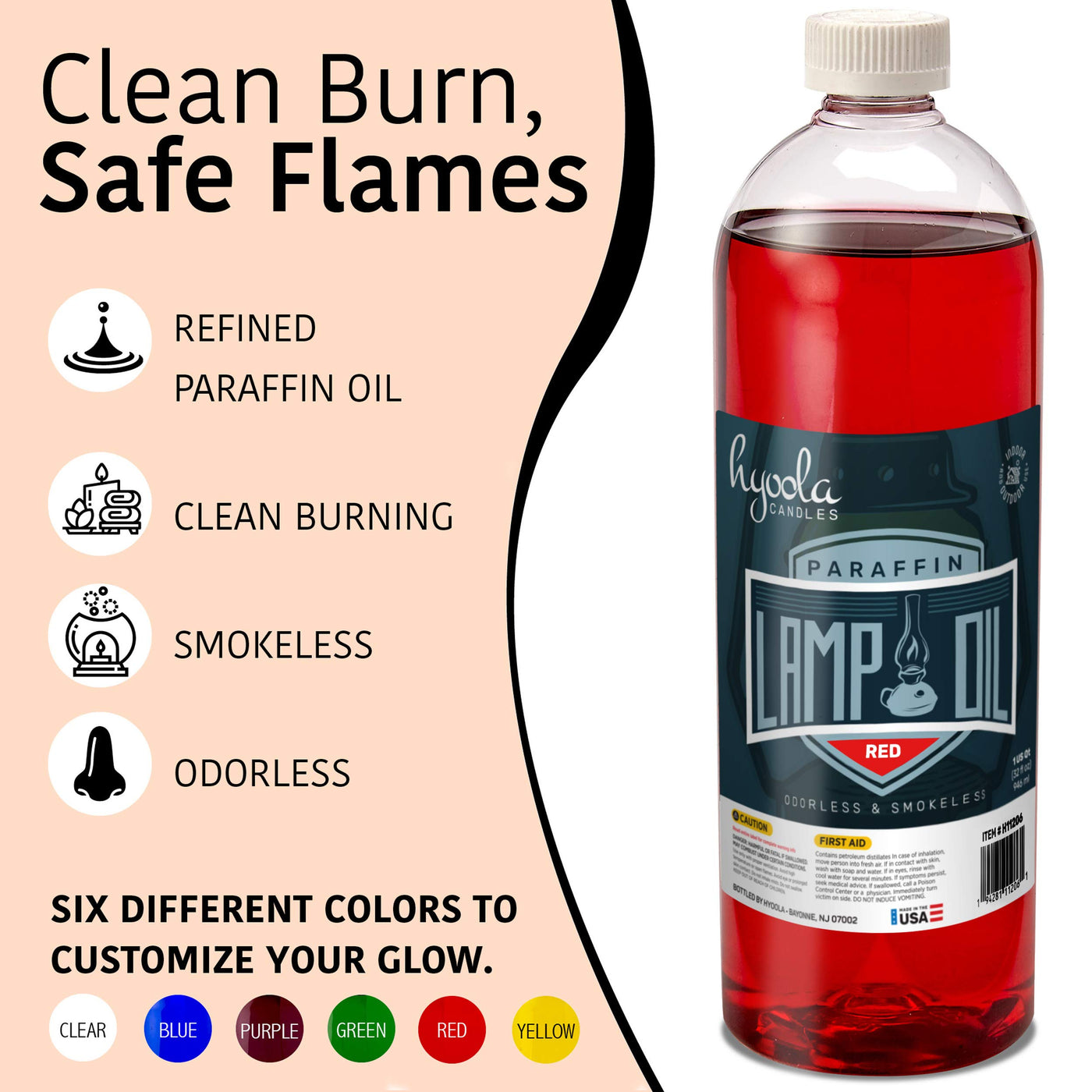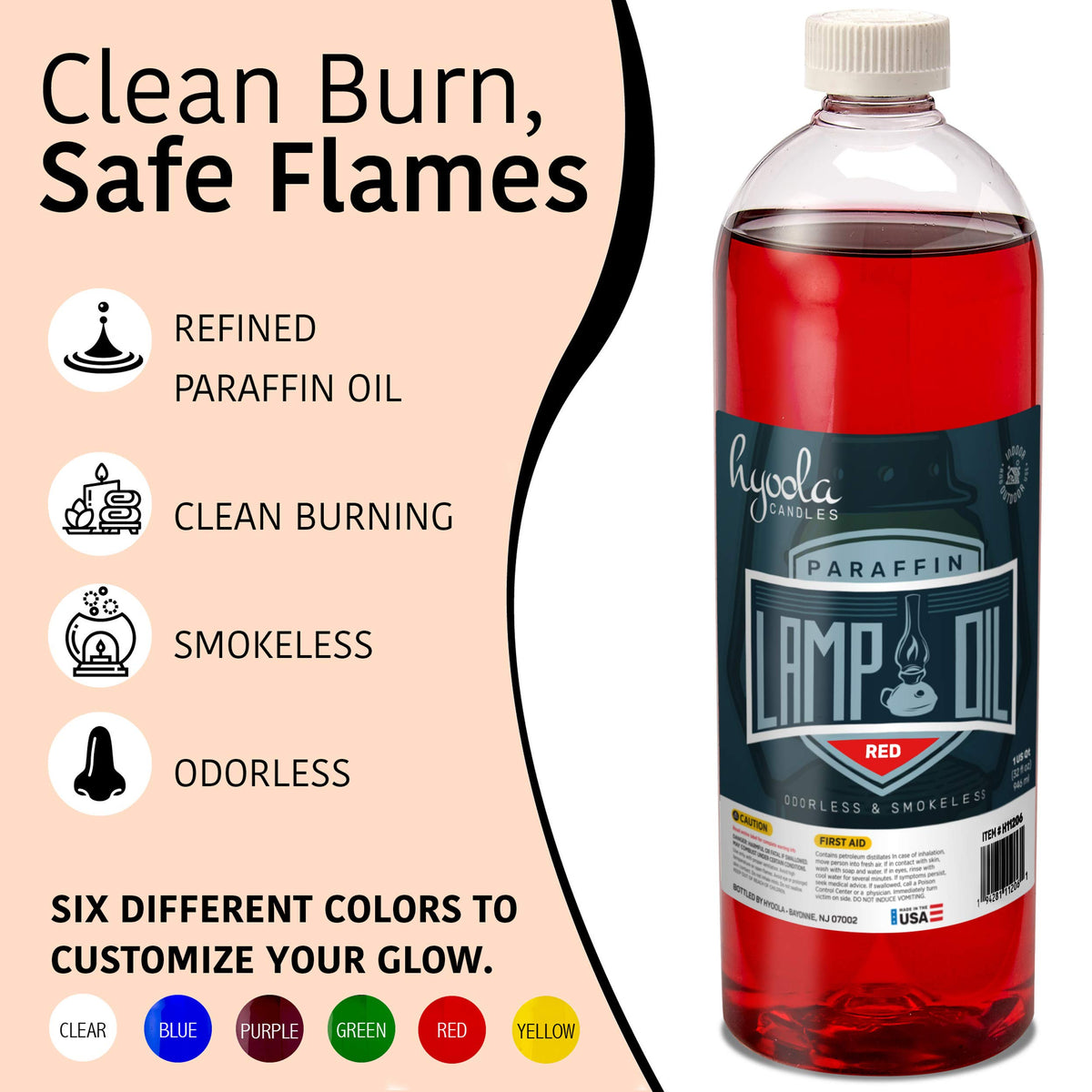 Hyoola Candles Liquid Paraffin Lamp Oil - Red Smokeless, Odorless, Ultra Clean Burning Fuel For Indoor And Outdoor Use - Highest Purity Available - 32Oz