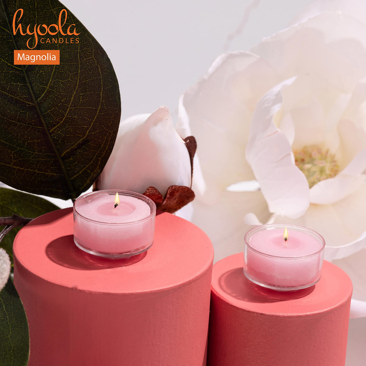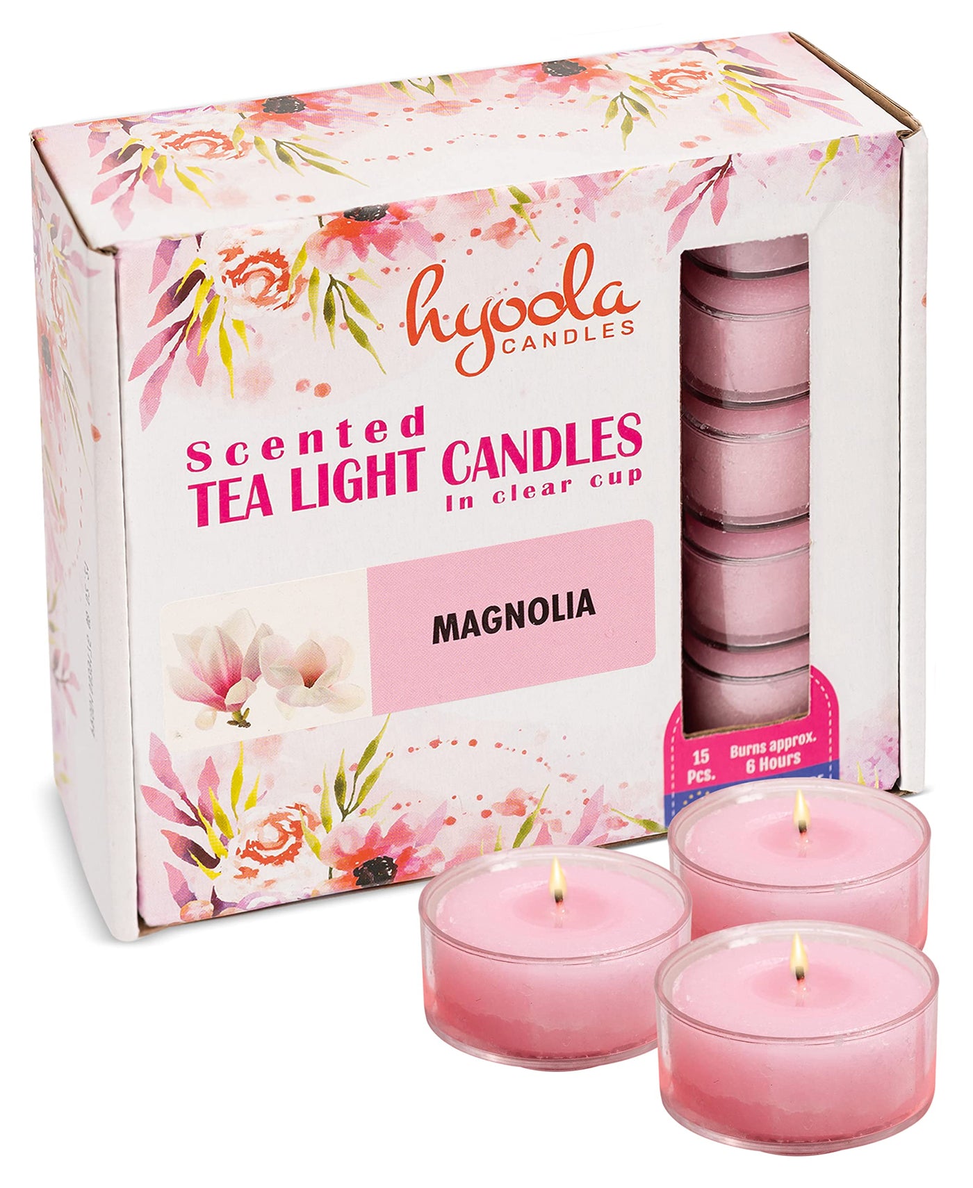 Hyoola Scented Tealight Candles - Clear Cup - Magnolia Tealight Candles Scented - 6 Hour Burn Time - 15 Pack - European Made