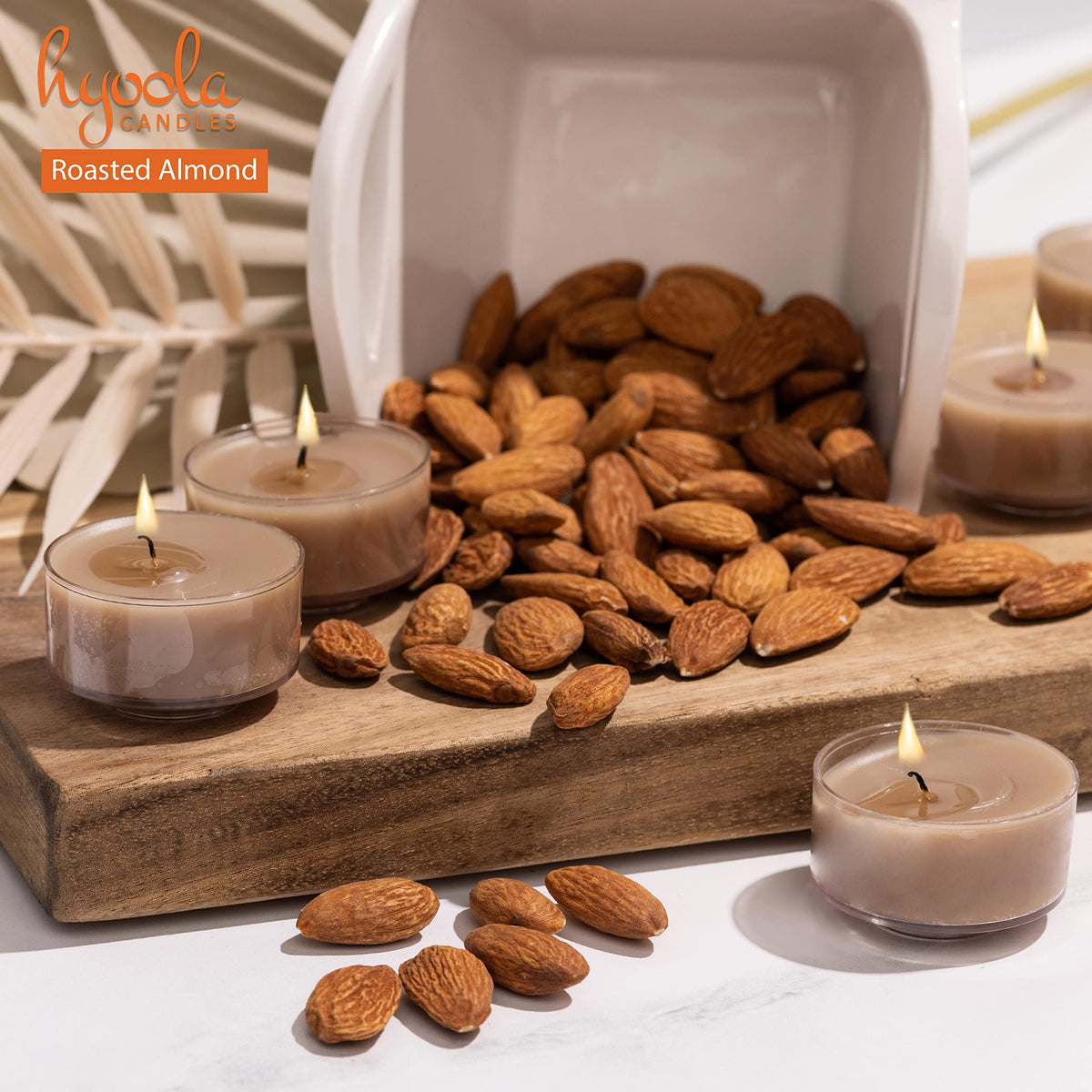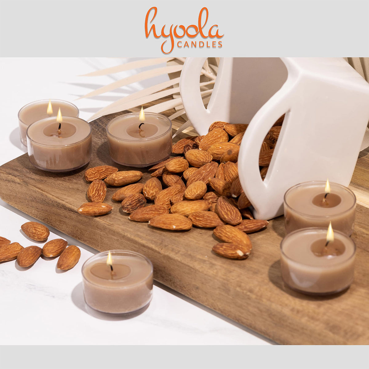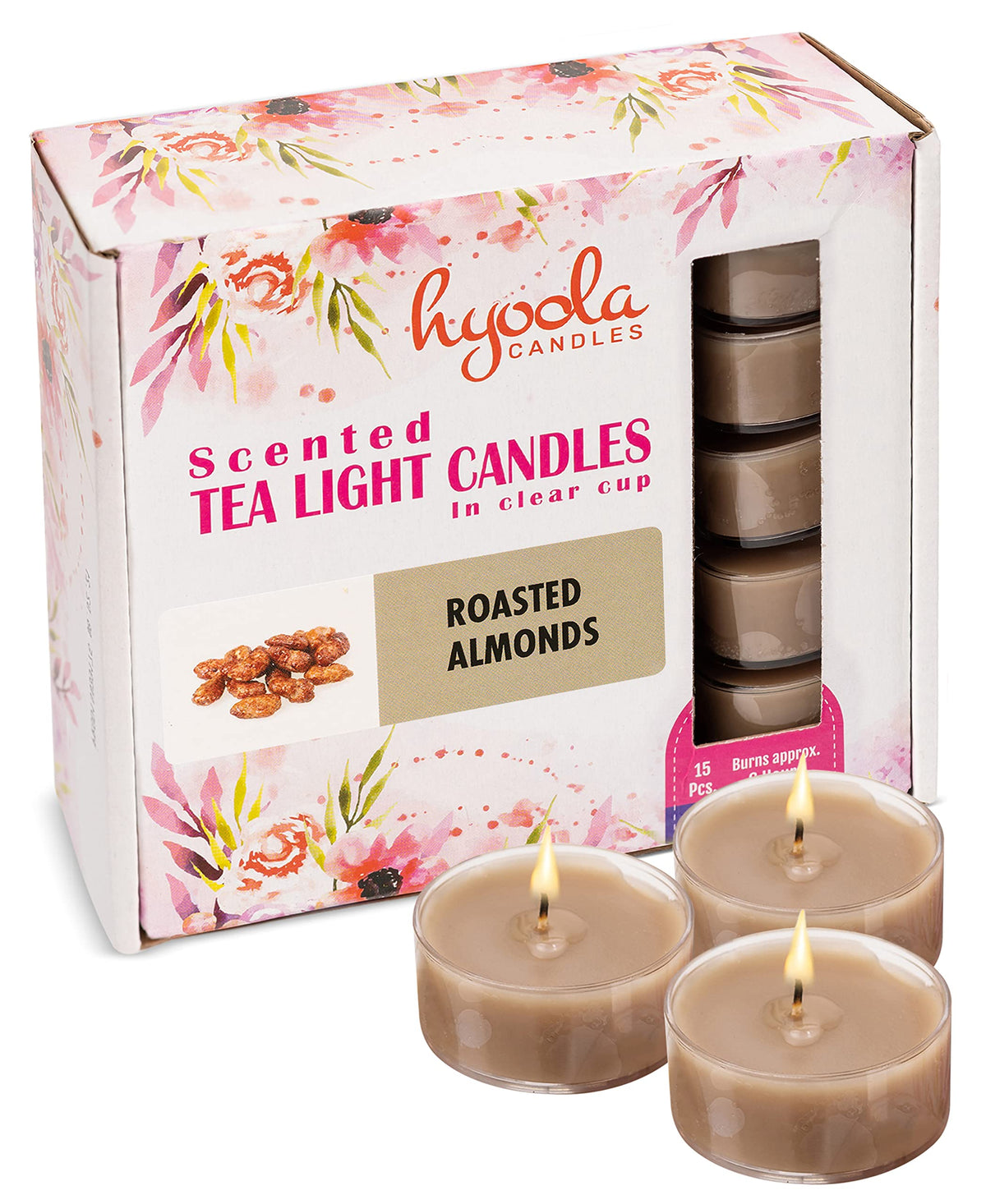 Hyoola Scented Tealight Candles - Clear Cup - Roasted Almonds Tealight Candles Scented - 6 Hour Burn Time - 15 Pack - European Made